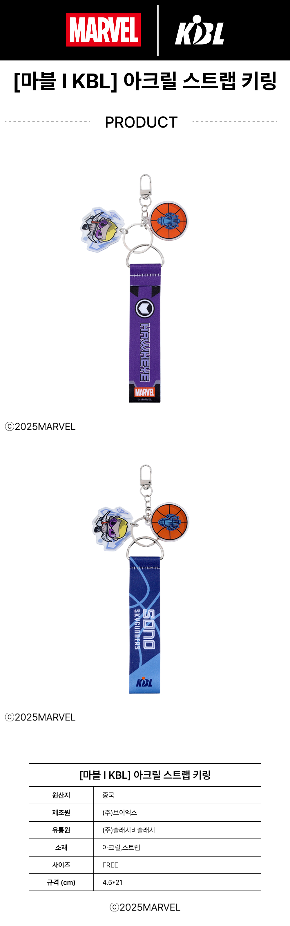 케이비엘 X 마블 컬렉션 고양 소노 호크아이 스트랩 키링