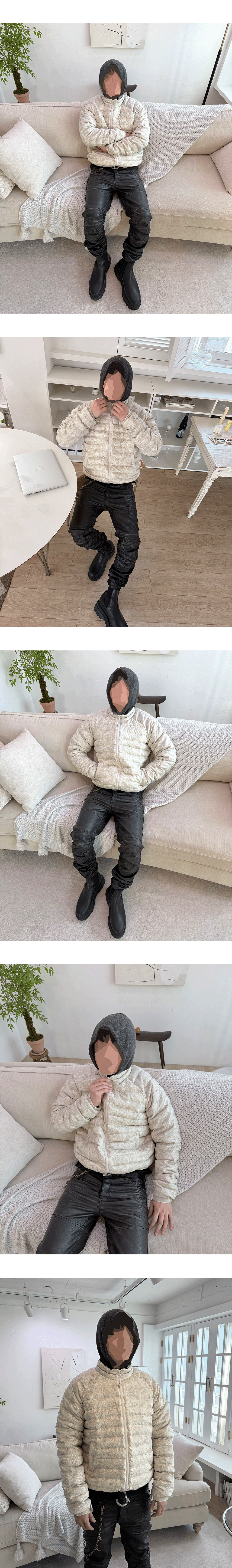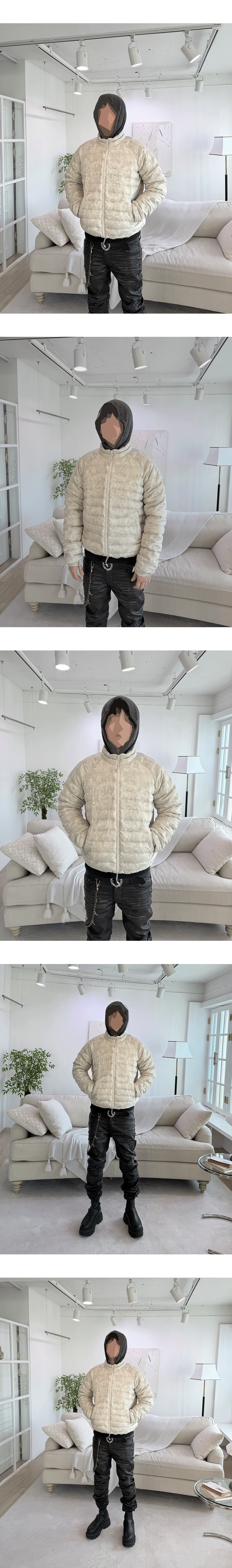 재패니즈 페이즐리 패브릭을 사용하여 제작된 슬림 구스패딩입니다. 충전재로는 거위털 250g(80/20)이 사용되었으며 한국에서 소량 제작되었습니다. Model spec - 178cm / 70kg Outer : Undermycar Hommage Embraced Aviator Slim Puffer Jacket Sage Paisley - Size 1 Pants : Undermycar 25FW Faux Leather Battle Biker Pants Black – Size 1 Acc : Undermycar 25FW Ouroboros Loop Buckle Leather Belt Black