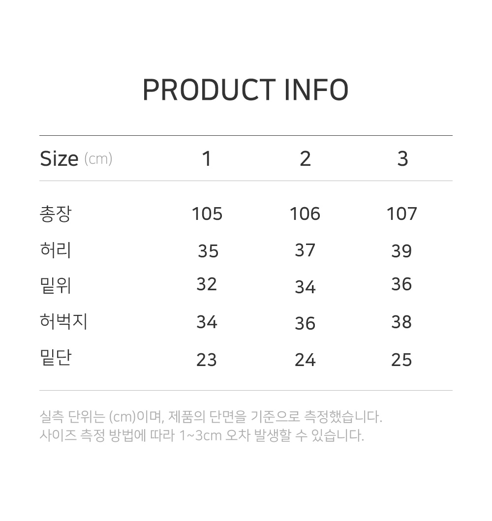 | 허리 | 허벅지 | 밑단 | 밑위 | 총장 |