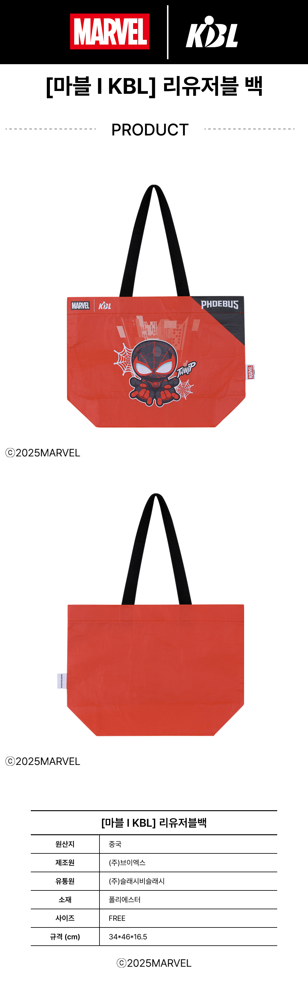 케이비엘 X 마블 컬렉션 울산 현대모비스 마일스모랄레스 리유저블백