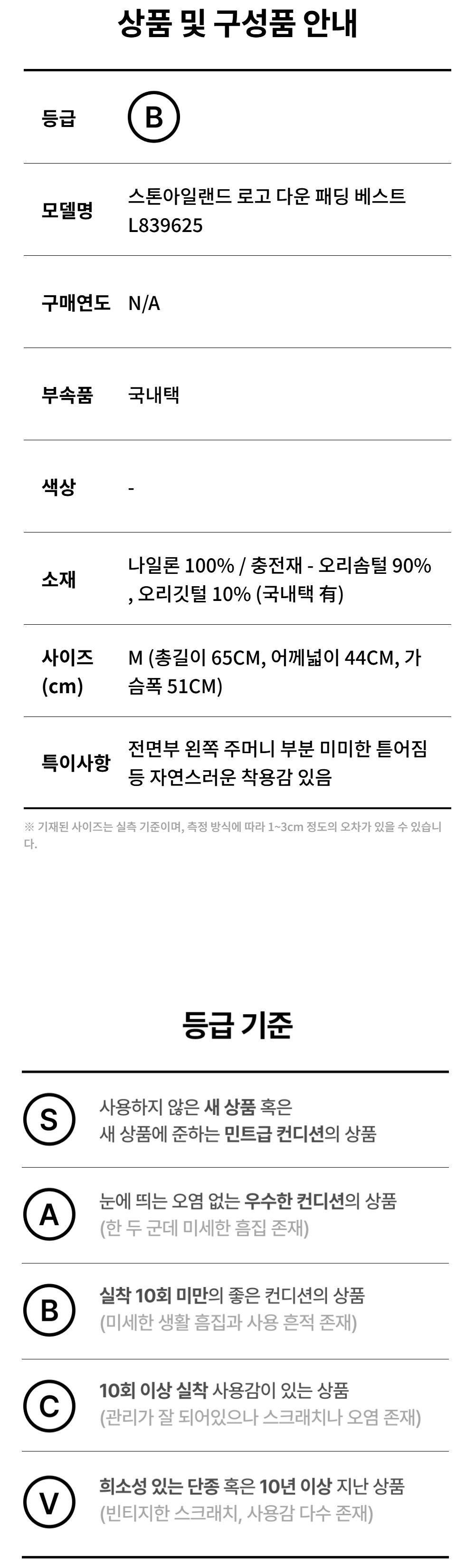 스톤아일랜드 로고 다운 패딩 베스트 L839625