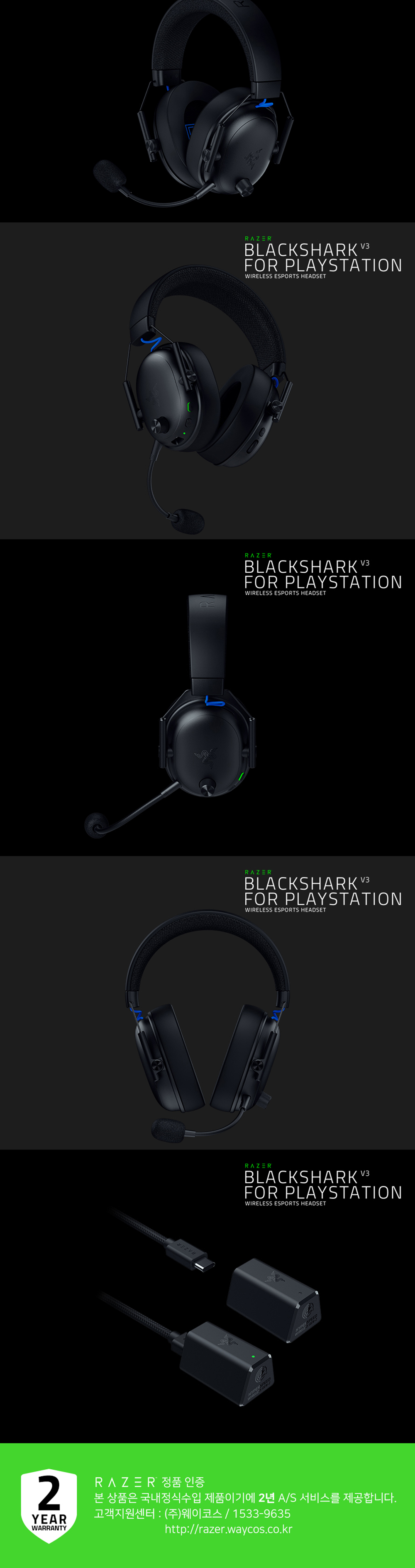 레이저 블랙샤크 V3 플레이스테이션 공식라이센스 PS5/PC겸용 무선 게이밍 헤드셋 블랙
