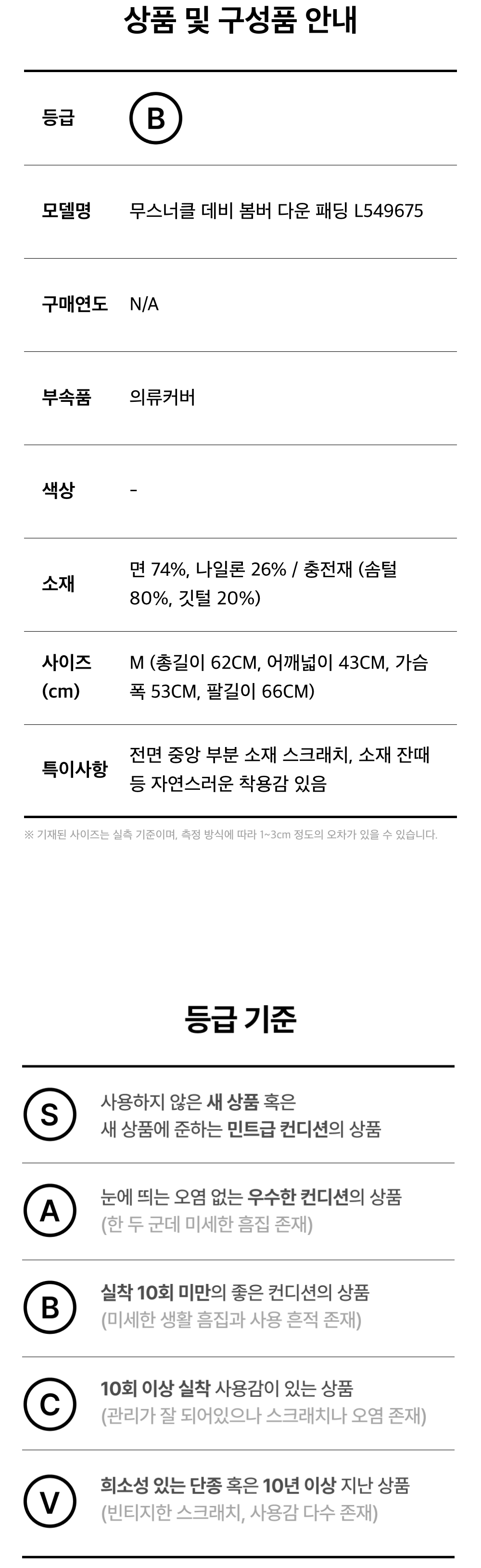 무스너클 데비 봄버 다운 패딩 L549675