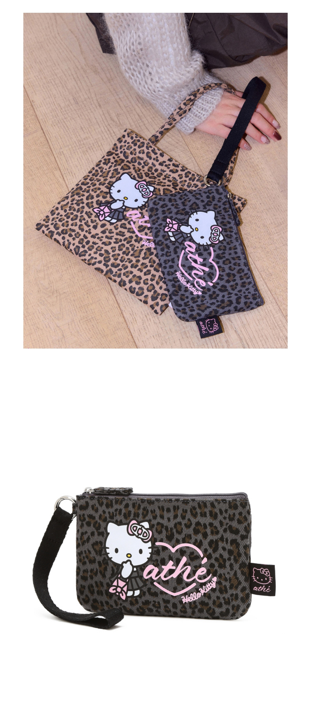 헬로 키티 x 아떼 레오파드 그레이 르봉 파우치_AAWA6E001G3