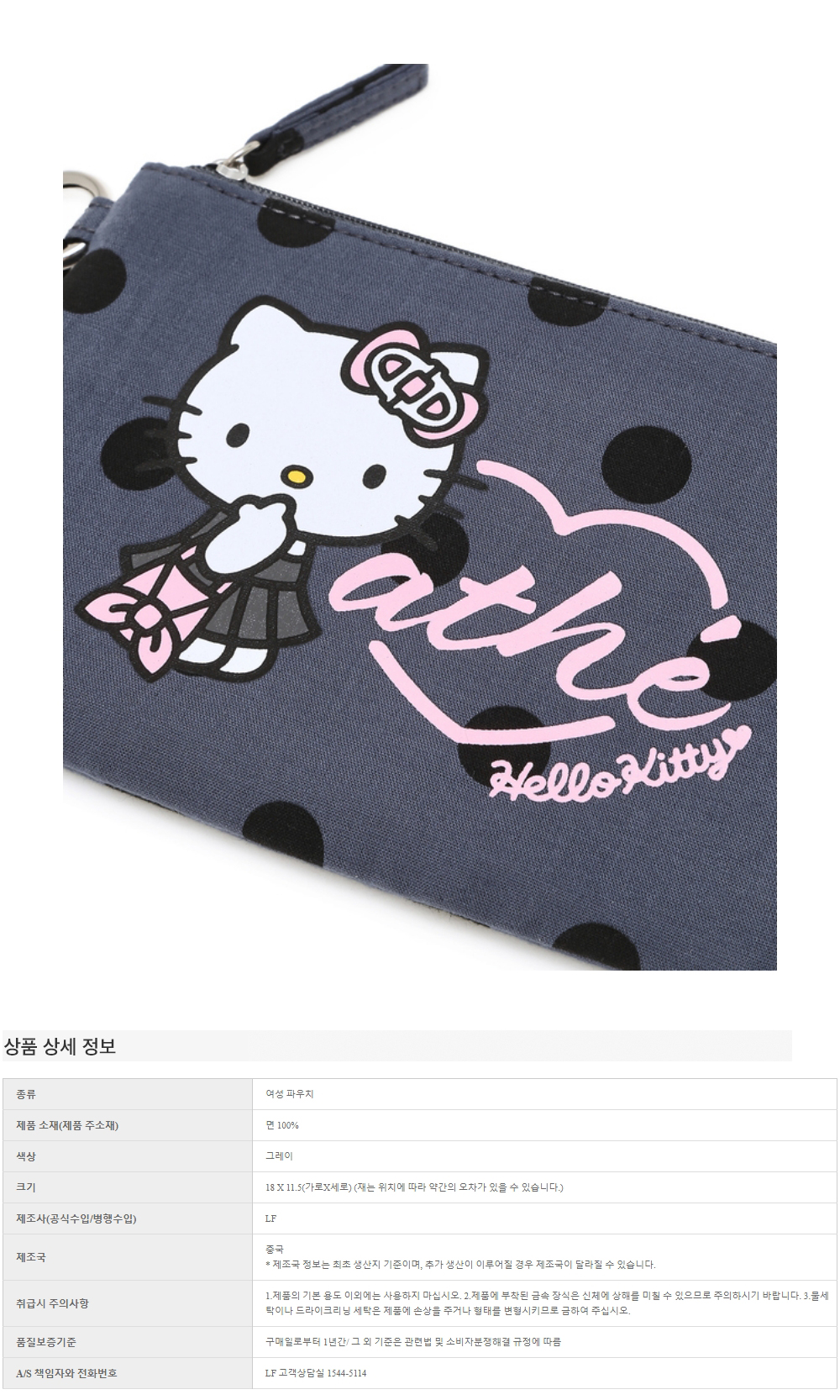 헬로 키티 x 아떼 도트 그레이 르봉 파우치_AAWA6E002G3