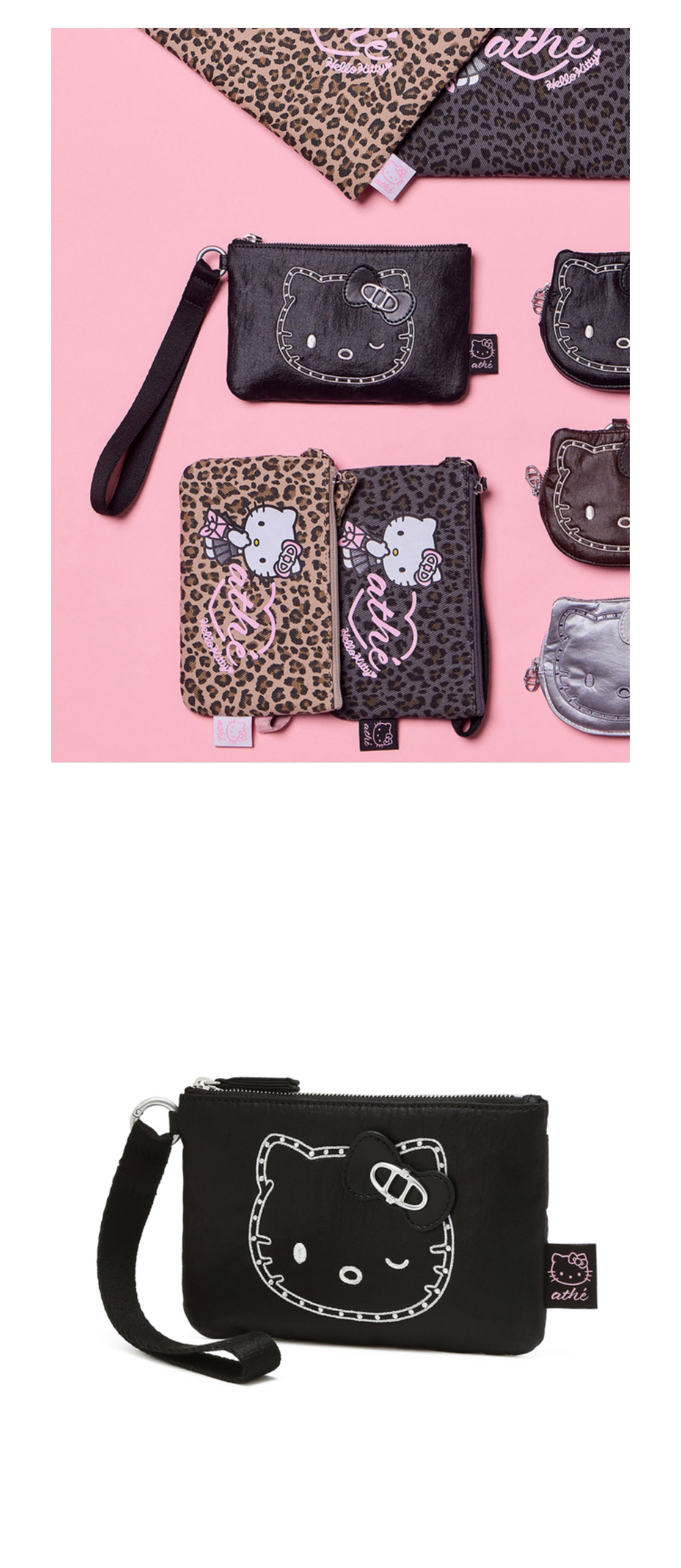 헬로 키티 x 아떼 스터드 블랙 르봉 파우치_AAWA6E003BK