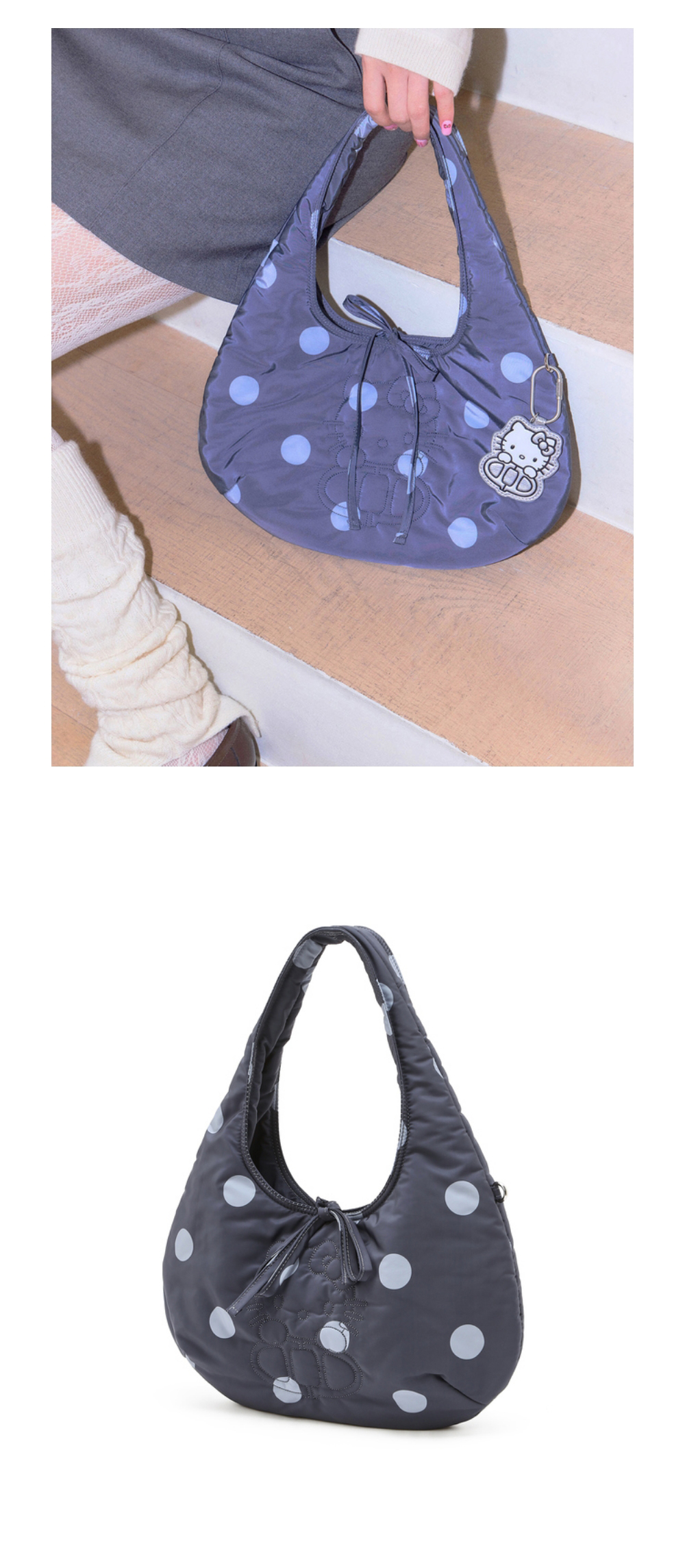 헬로 키티 x 아떼 도트 그레이 키티 자수 숄더백_AABA6E016BK