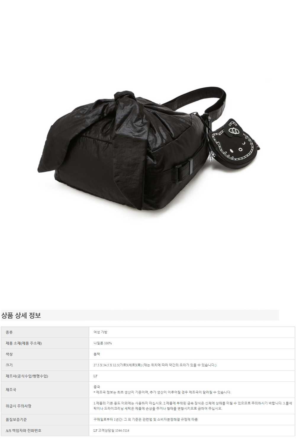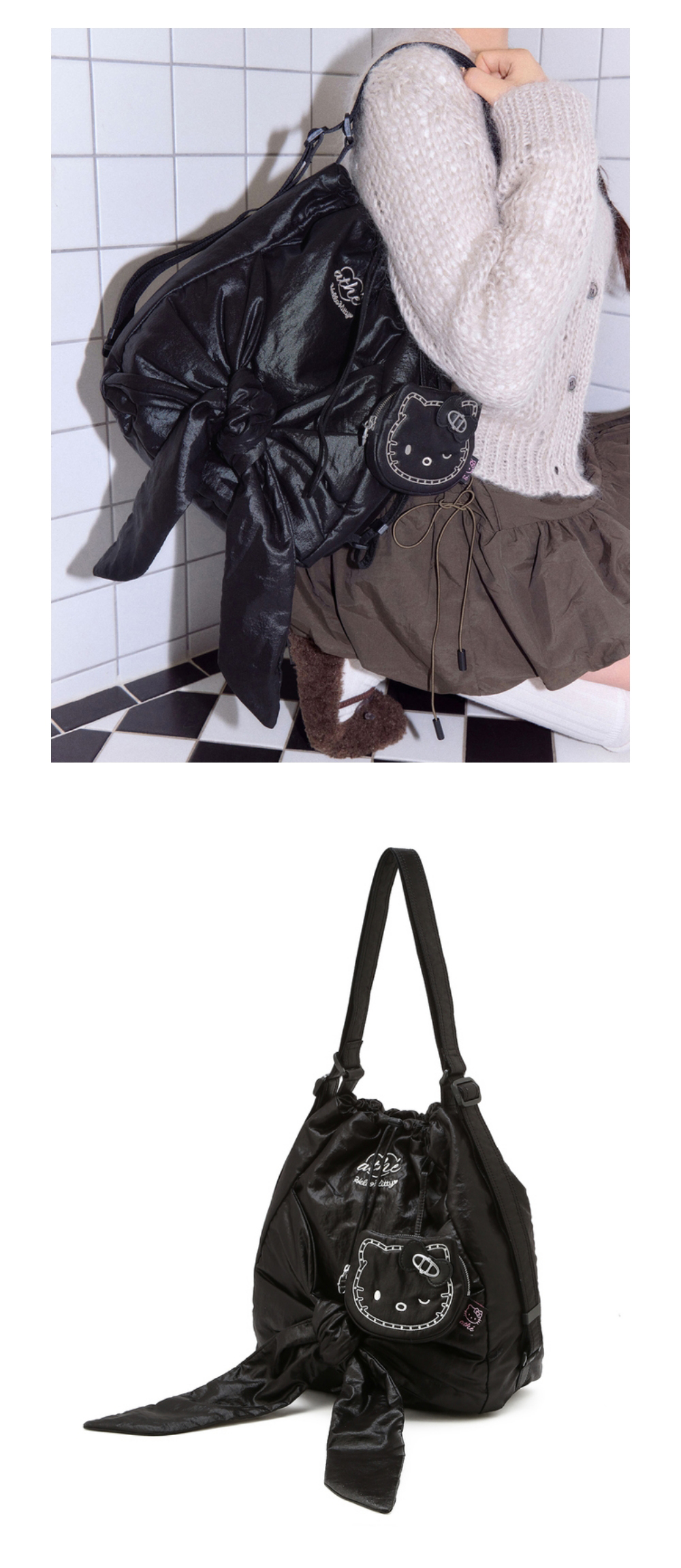 헬로 키티 x 아떼 르봉 글로시 블랙 백팩 겸 숄더백S_AABA6E003BK