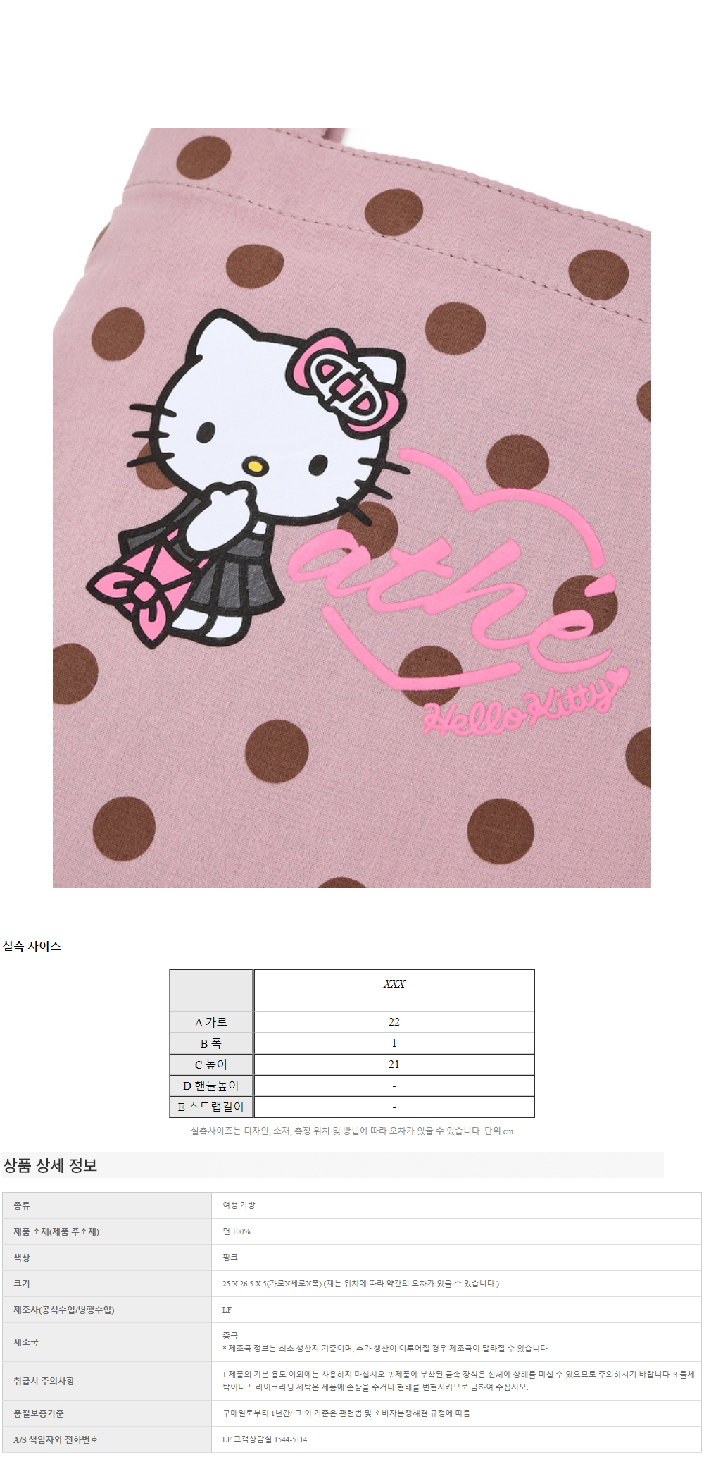 헬로 키티 x 아떼 도트 핑크 토트백 S_AABA6E022P2