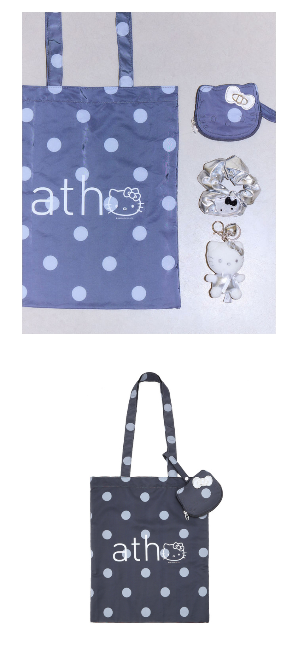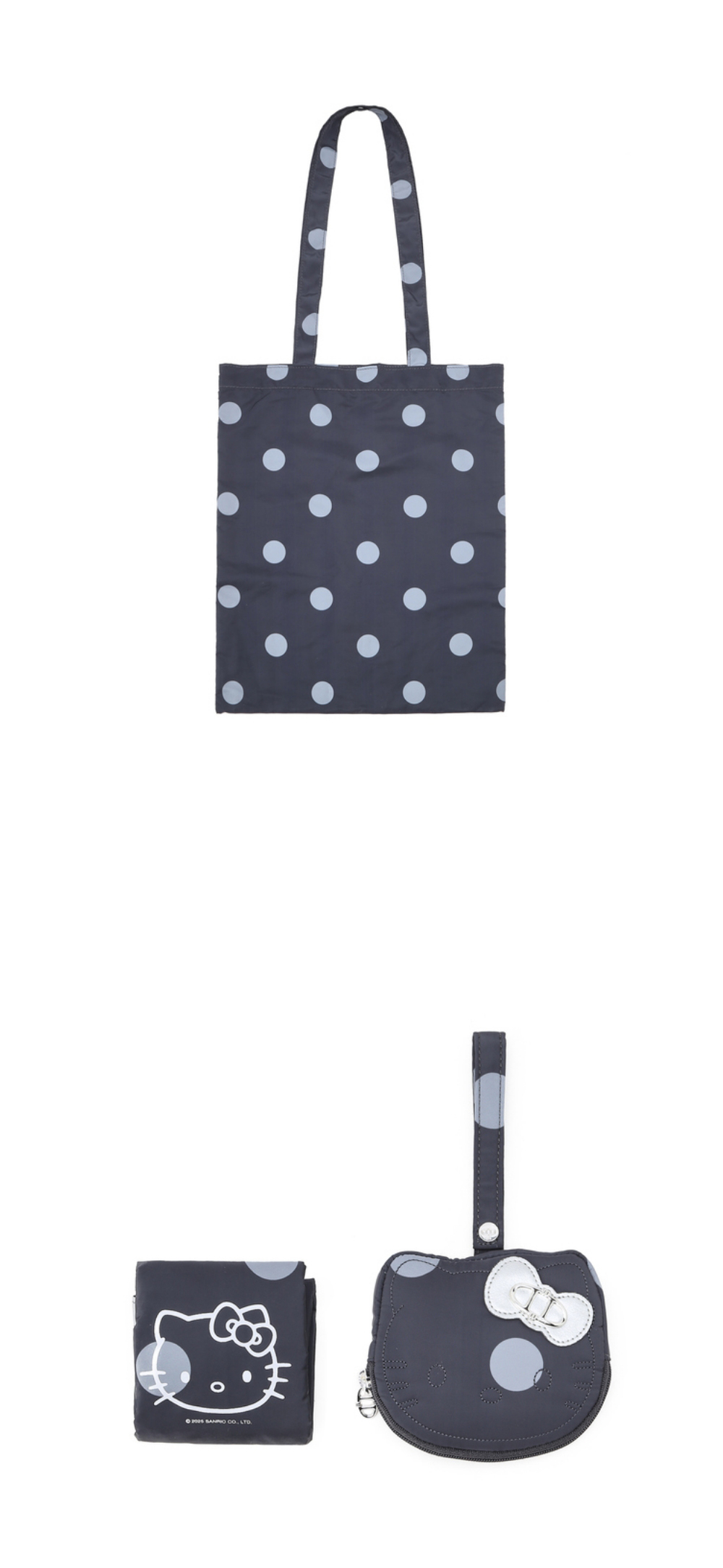 헬로 키티 x 아떼 도트 블랙 파우치 키링 & 에코백_AAWA6E016BK