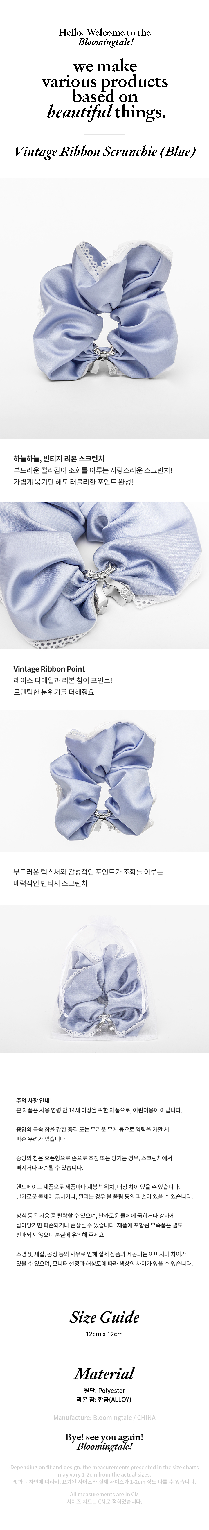 블루밍테일 빈티지 리본 스크런치 블루