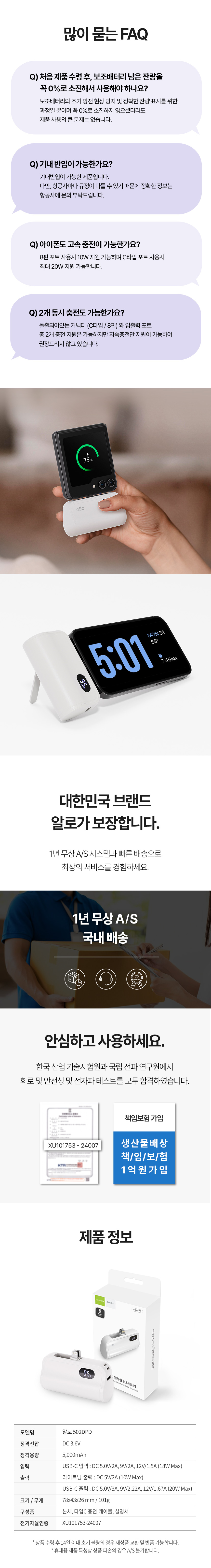 알로코리아 미니 도킹형 고속충전 갤럭시 아이폰 올인원 보조배터리 20W 5000mAh