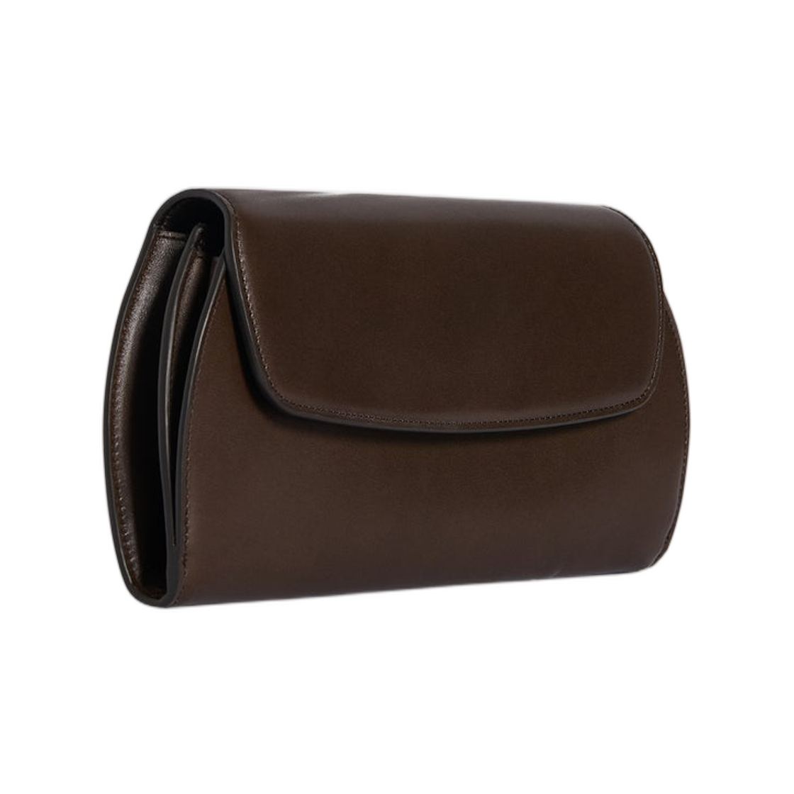 The Row Curved Clutch in Leather Dark Brown