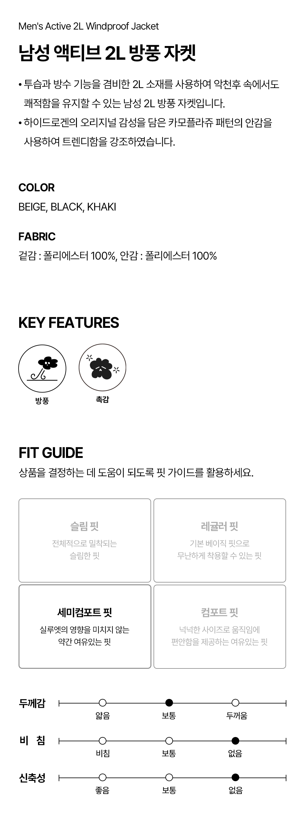 하이드로겐 남성 액티브 2L 방풍 자켓 베이지