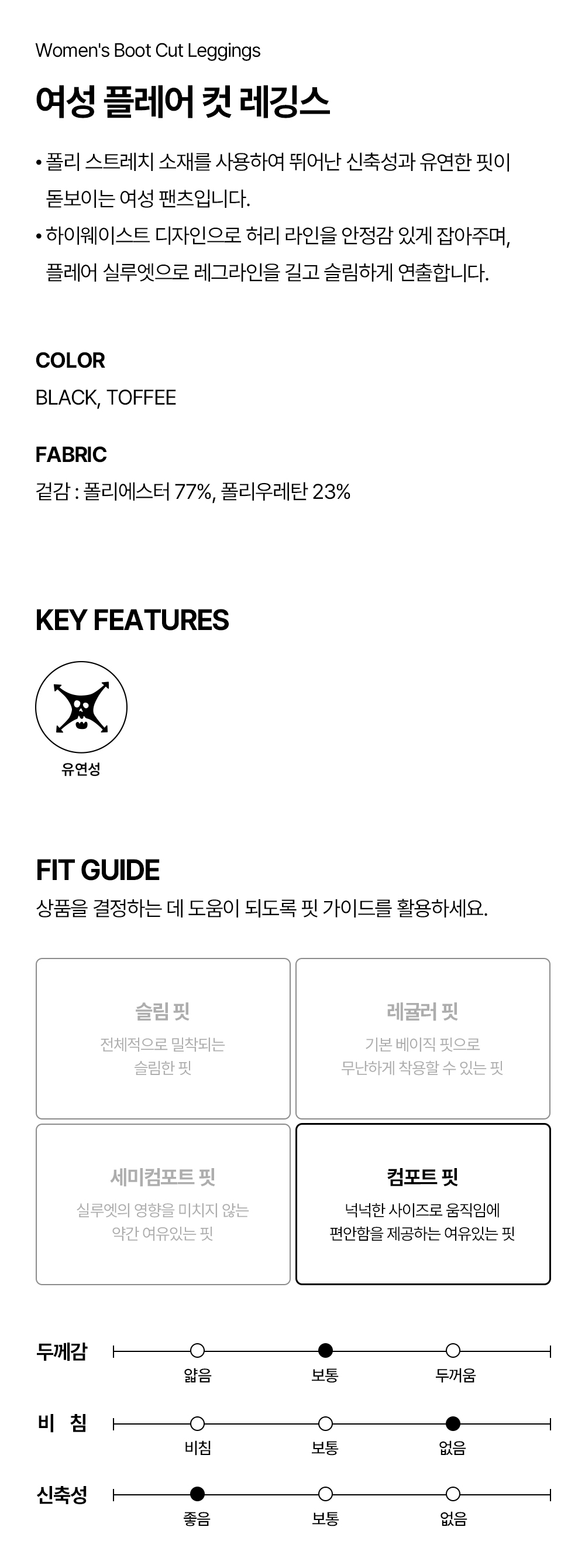 하이드로겐 여성 플레어 컷 레깅스 블랙