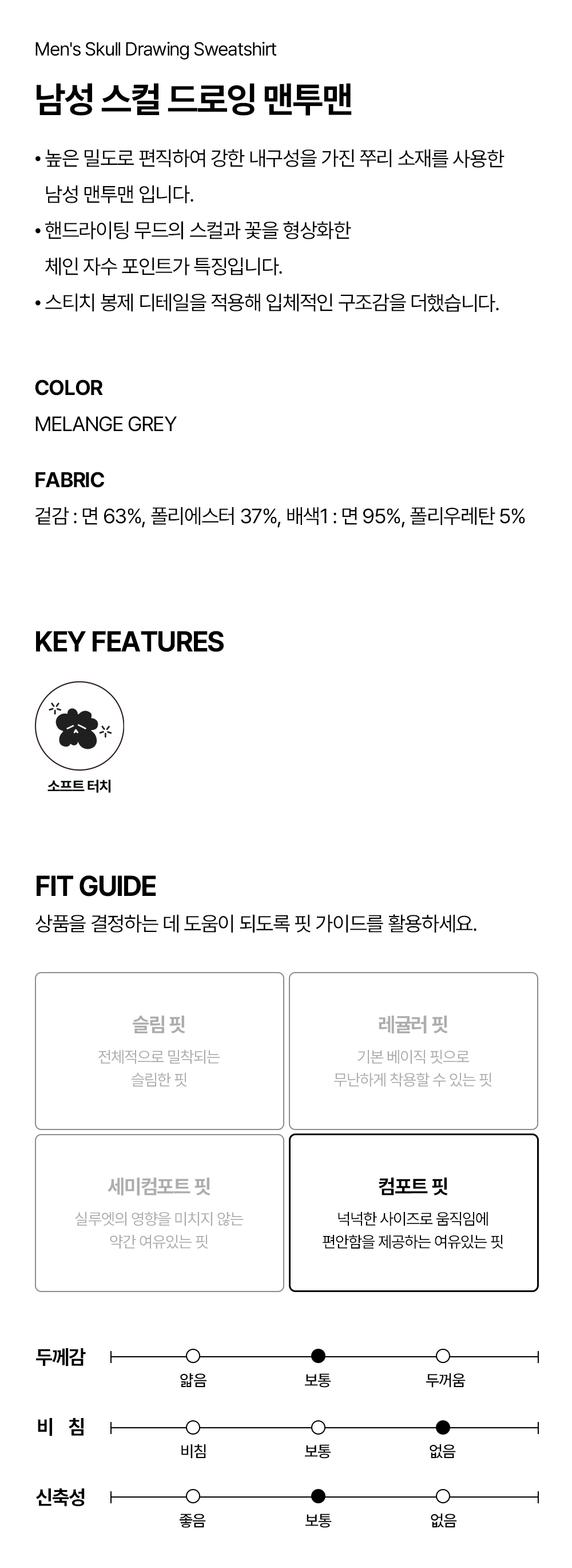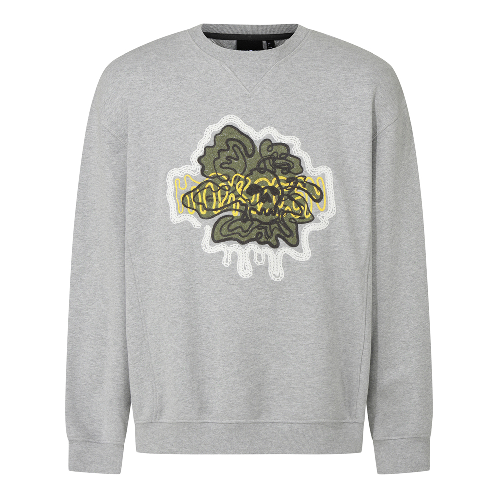 하이드로겐 남성 스컬 드로잉 맨투맨 멜란지 그레이
