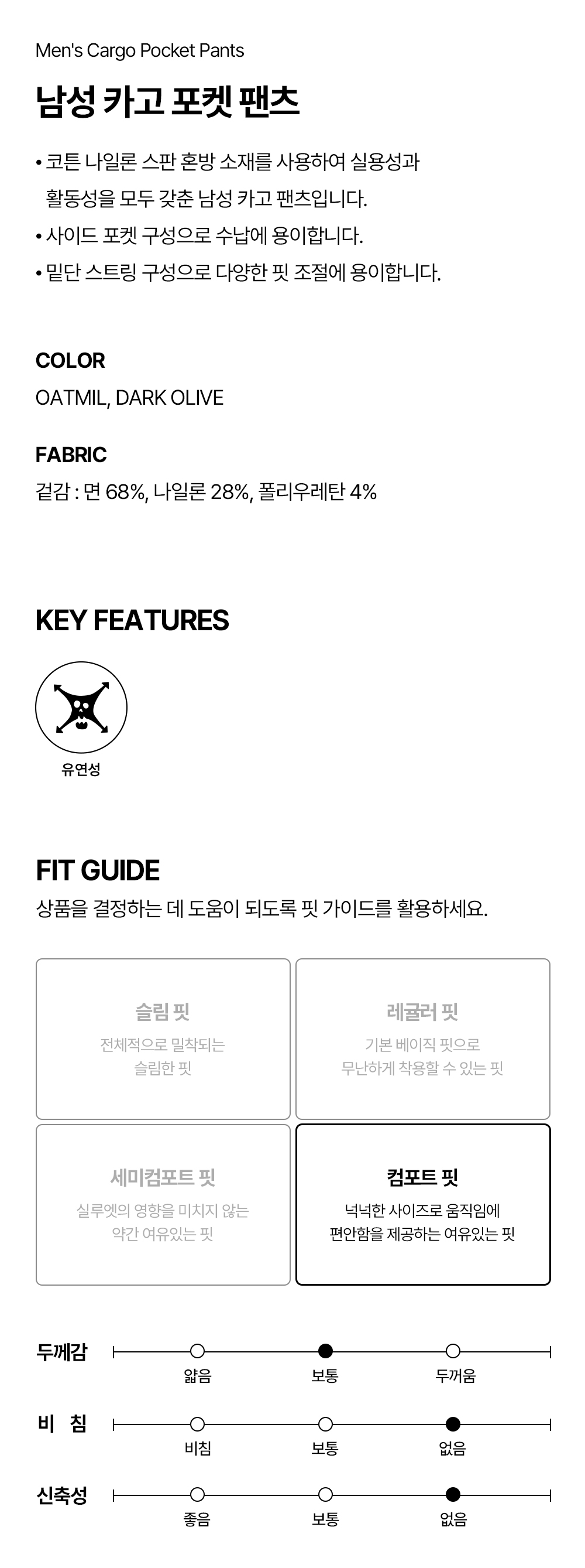 하이드로겐 남성 카고 포켓 팬츠 카키