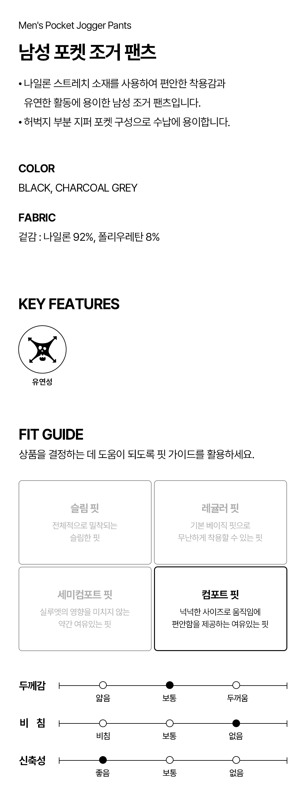 하이드로겐 남성 포켓 조거 팬츠 블랙