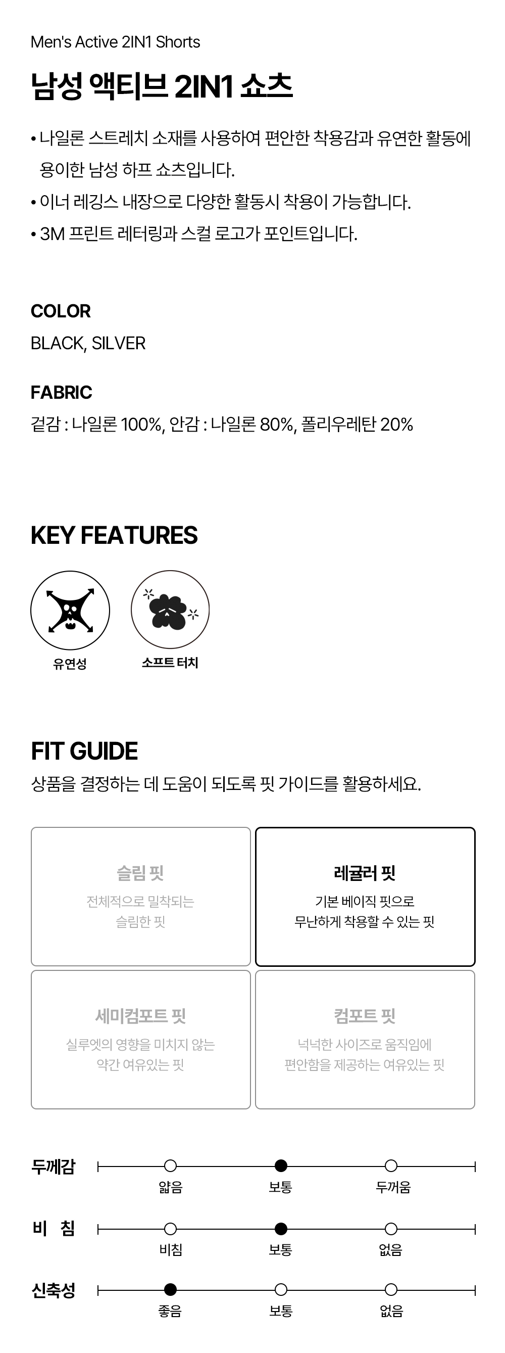 하이드로겐 남성 액티브 2IN1 쇼츠 블랙
