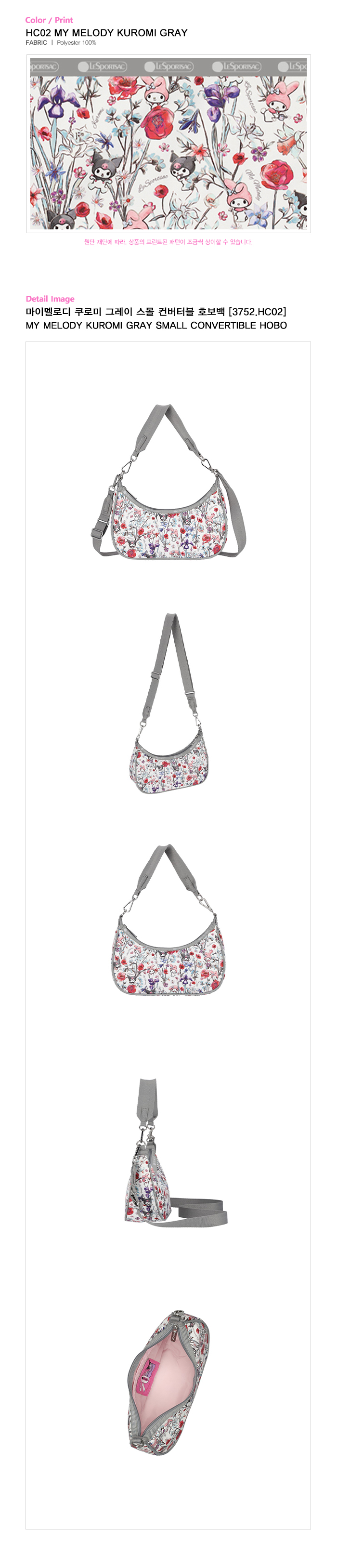 레스포색 마이멜로디 쿠로미 그레이 스몰 컨버터블 호보백