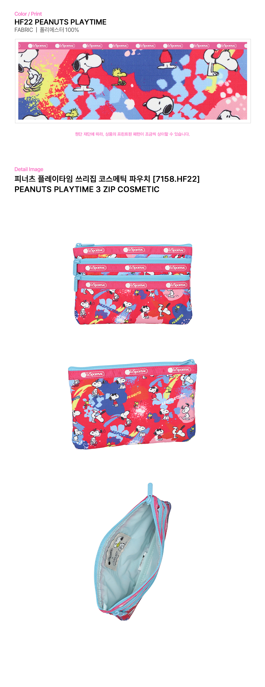 레스포색 피너츠 플레이타임 쓰리집 코스메틱 파우치