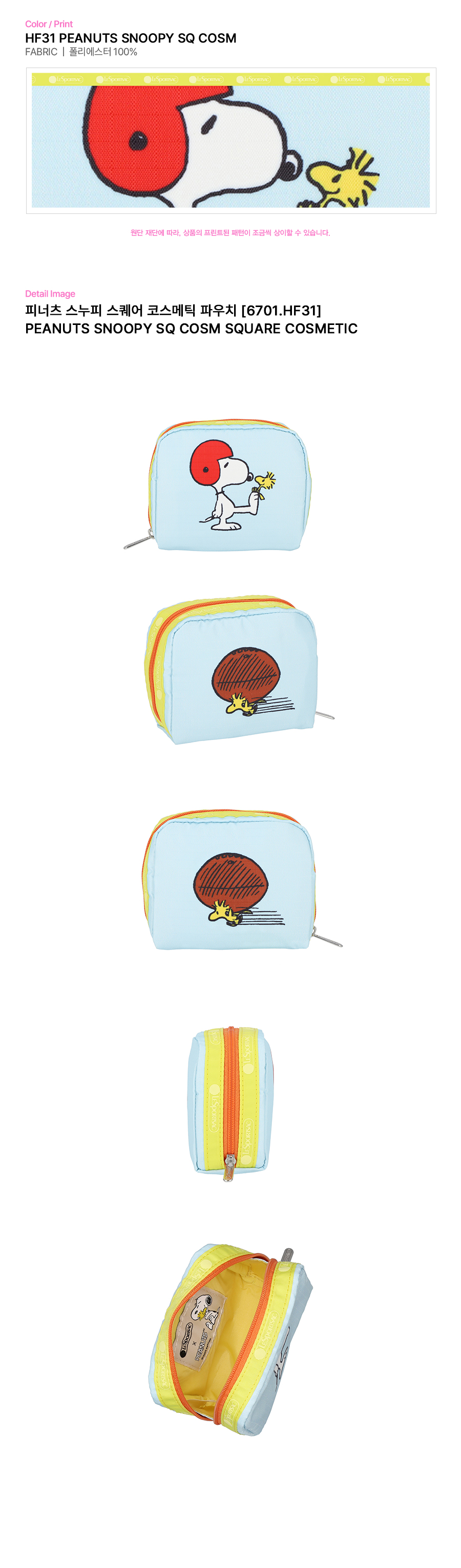 레스포색 피너츠 스누피 스퀘어 코스메틱 파우치