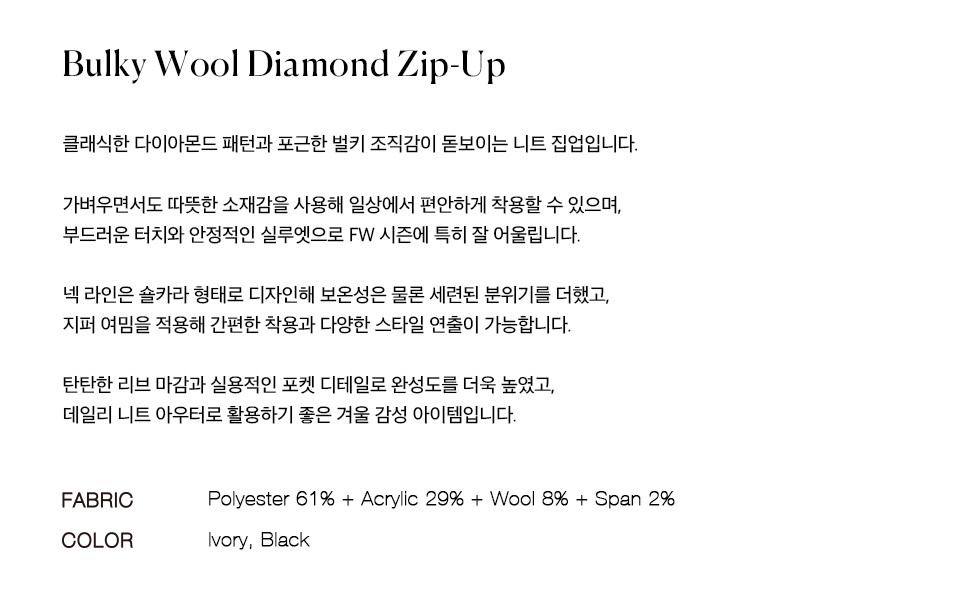 니티드 벌키 울 다이아몬드 집업 블랙
