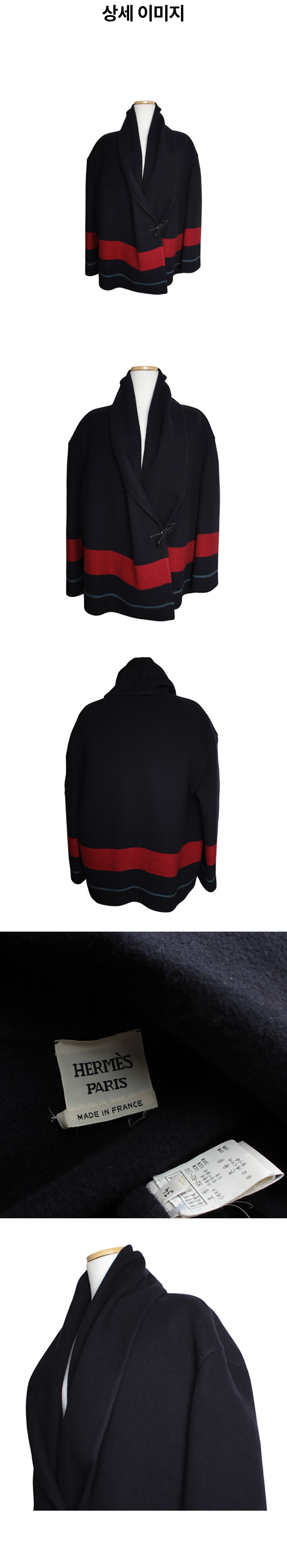에르메스 네이비 레드 파온 라이닝 캐시미어 숄 라펠 숏코트 34