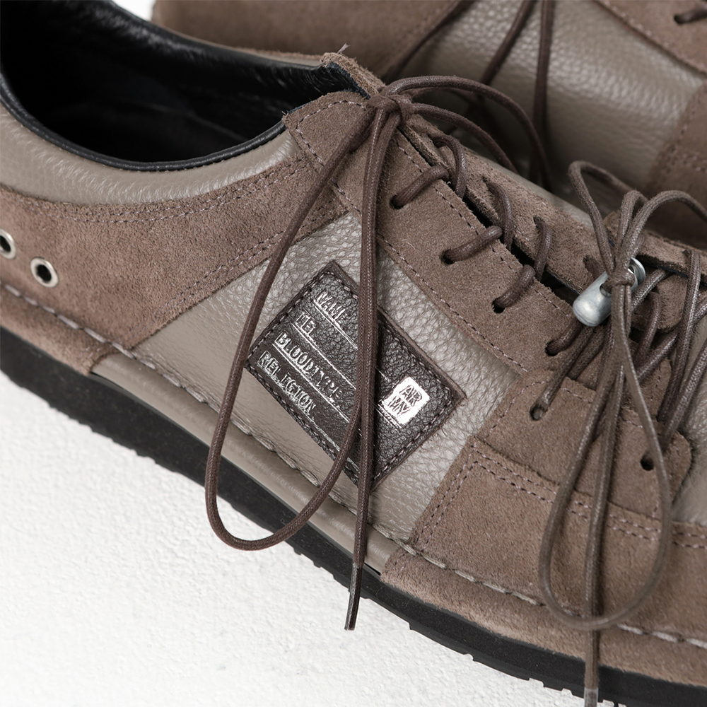 [더블립_카키그레이] 밀리터리 빈티지 스니커즈. 이중 구조의 탑 라인을 따라 형성된 더블 레이어드 슈레이스와 도금처리하지 않은 빈티지 질감의 코드락 조합은 팬츠 밑단 아래서 이중으로 쌓이며 러프하고 풍부한 실루엣을 자아냅니다. 카모 패턴에서 영감을 받은 가죽 조합 그 위로 구현된 은박 네임택, 힐컵에 포인트되는 아일렛 등 밀리터리 베이스의 파츠 구성을 통해 군용 스니커즈의 느낌을 재해석했습니다. 초끈은 경년변화에 따라 왁스끼가 빠지면서 자연스럽게 해지며 가라앉는 쉐입을 만들어냅니다. 이중 처리된 슈레이스는 전면부를 풀어 좀 더 캐주얼하게 스타일링하실 수 있으며, 다양한 끈들의 조합으로 재밌게 연출할 수 있습니다. *사이즈 - 와이드 팬츠에 어울리는 빅 볼륨 (굽높이 4.5cm) - 사이즈 추천▼ 평소 신으시는 신발의 가장 작은 사이즈 대비 발볼/발등 넓고 높으시면 -10사이즈 발볼/발등 좁고 낮으시면 -15~20사이즈 다운 *주문 제작 상품으로, 제작 기간은 결제 후 영업일 기준 약 12일 소요됩니다.