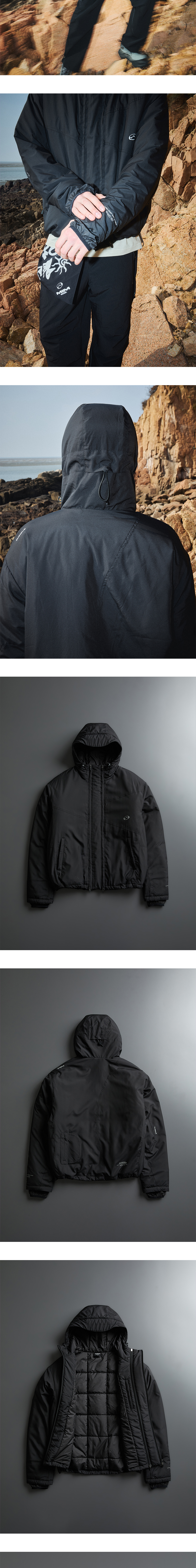 Shell Polyester 100% Lining Polyester 100% Filling Polyester 100% lightweight padding jacket front detachable zipper detail filled with 3M™ Thinsulate™ insulation nylon hand warmer with finger holes and watch hole signature curved line utility back pocket reflective print Dry clean recommended (petroleum-based) Machine wash possible with neutral detergent Do not bleach Wash dark and light colors separately Do not soak in water for a long time Avoid direct sunlight when drying