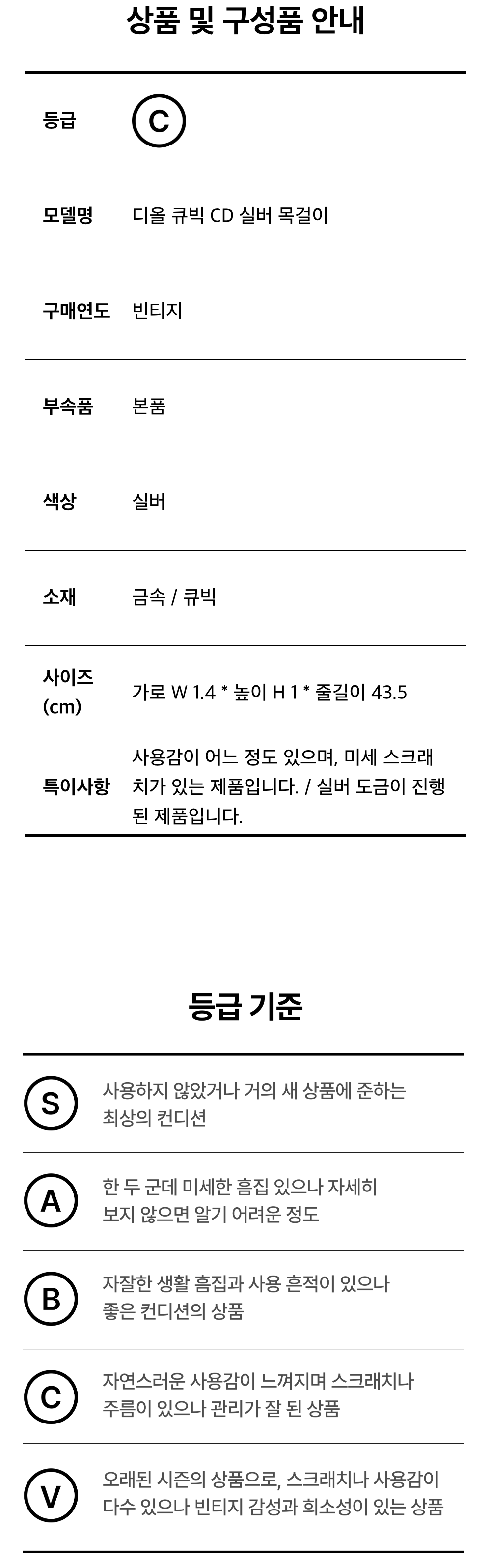 디올 큐빅 CD 실버 목걸이 A-B41935