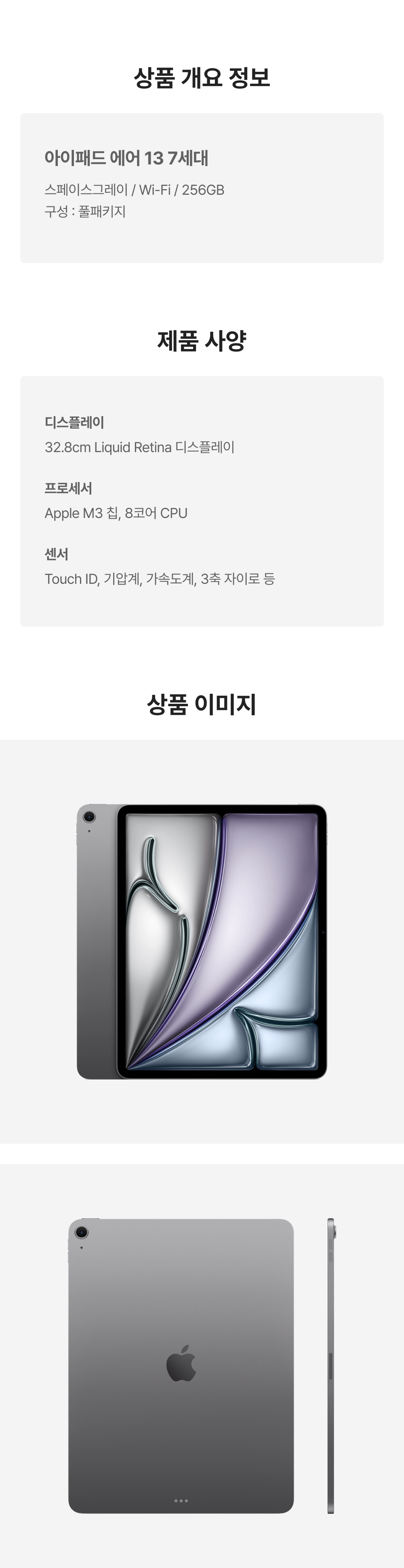 [S등급] 리퍼비시 아이패드 에어 13 7세대 wifi Apple M3 256기가 스페이스그레이