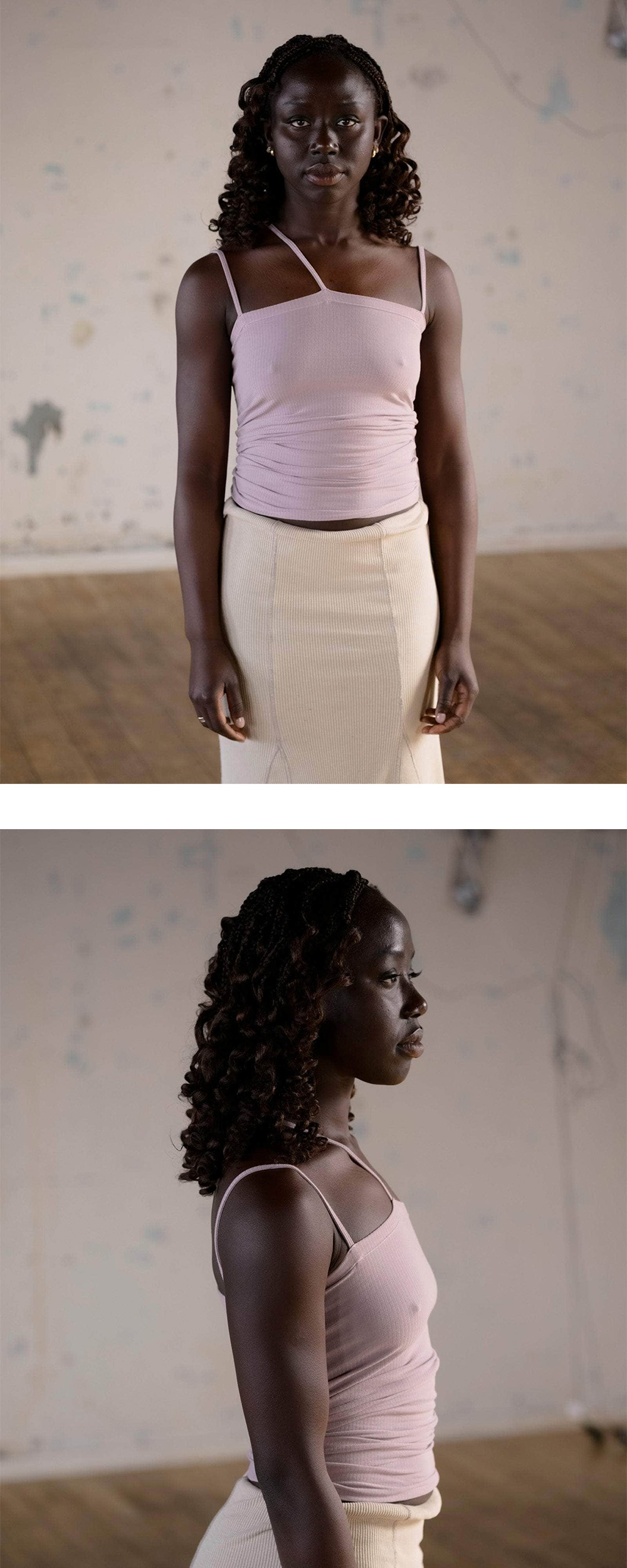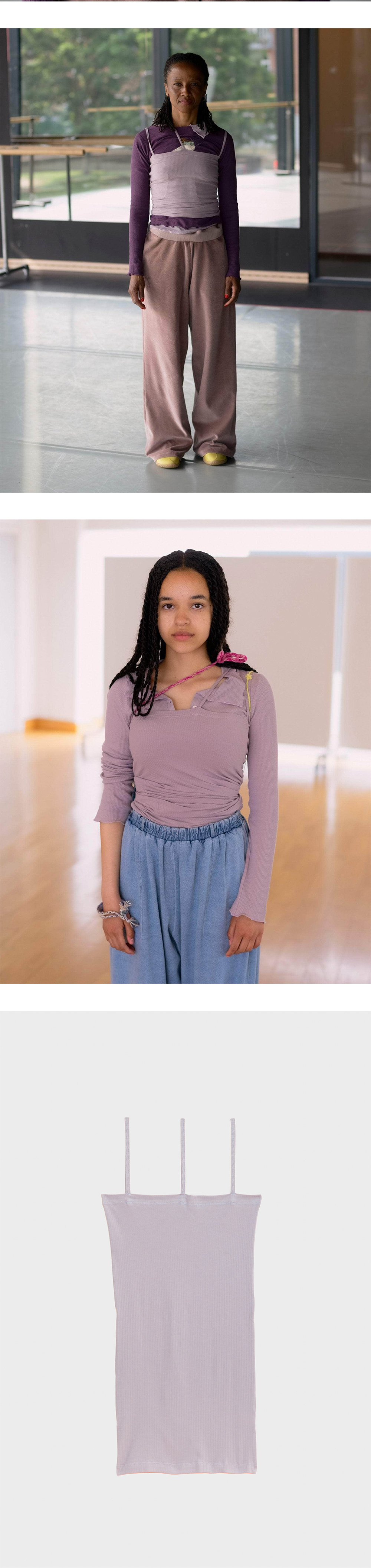 베이스레인지 우먼 니다 탱크 베르베 퍼플입니다. - 골지 탱크탑 - 얇은 어깨 스트랩 - 비대칭 스트랩 디테일 * 모델 스펙: 167cm, S 사이즈 착용