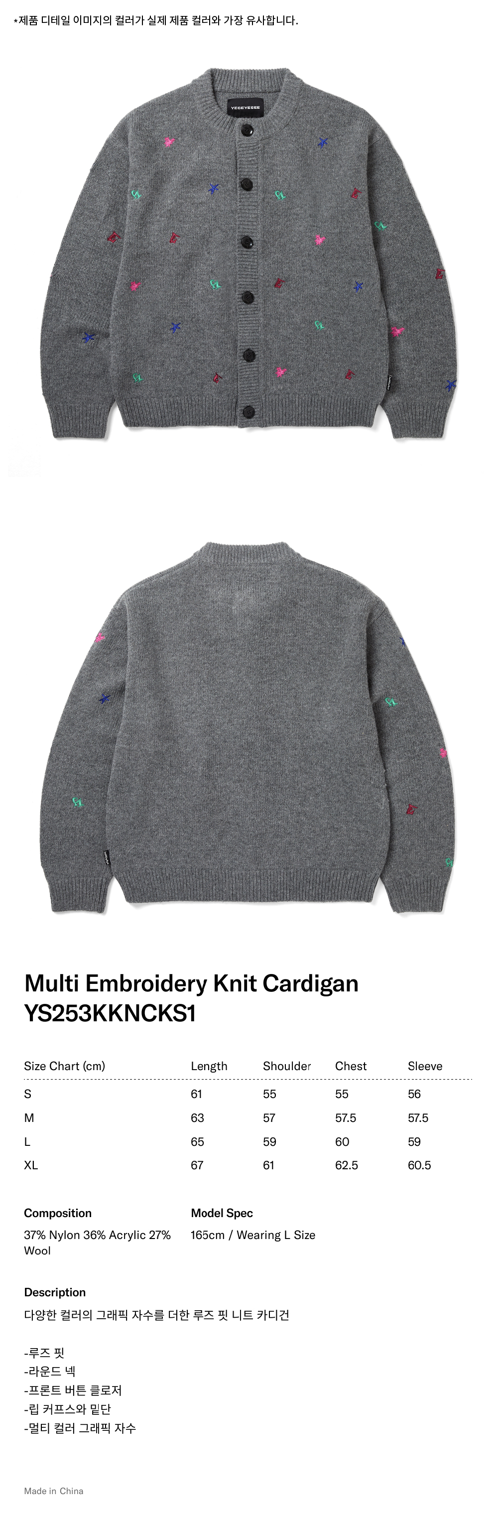 예스아이씨 멀티 자수 니트 가디건 그레이