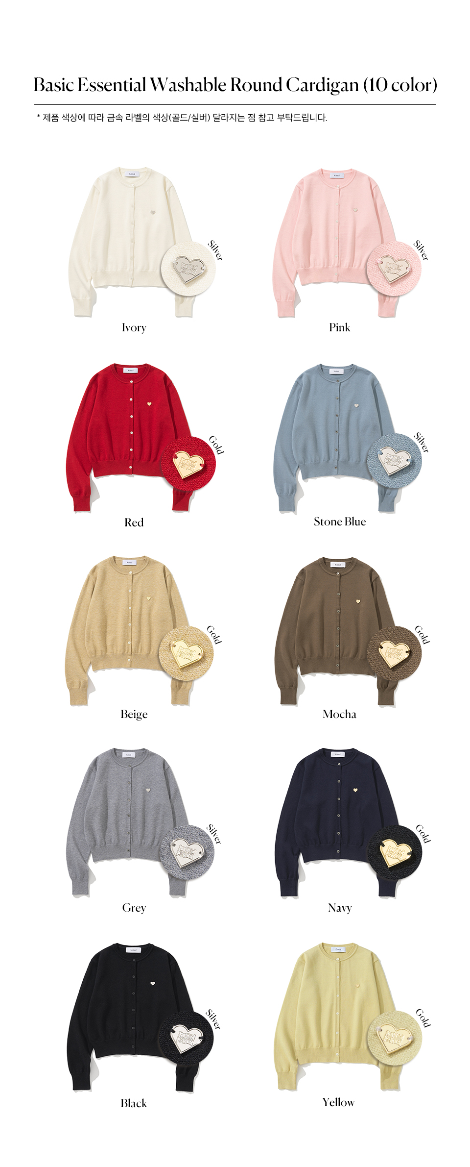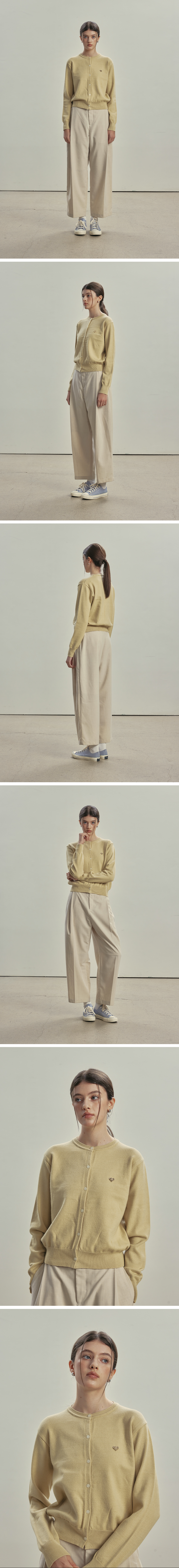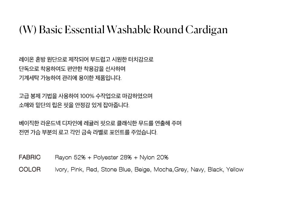 니티드 여성 베이직 에센셜 워셔블 라운드 가디건 옐로우