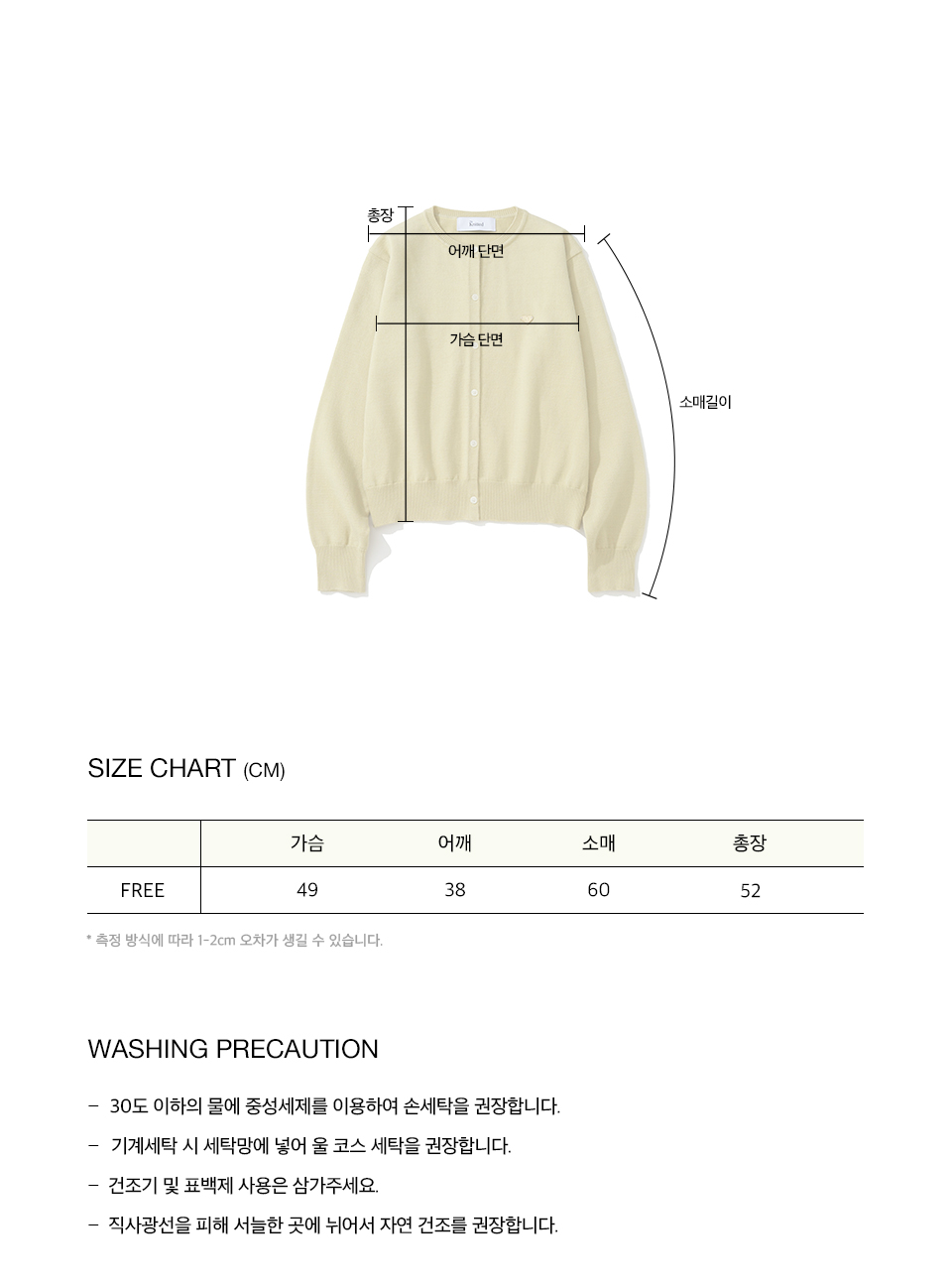 측정 방법에 따라 사이즈에 일부 오차가 있을 수 있습니다.