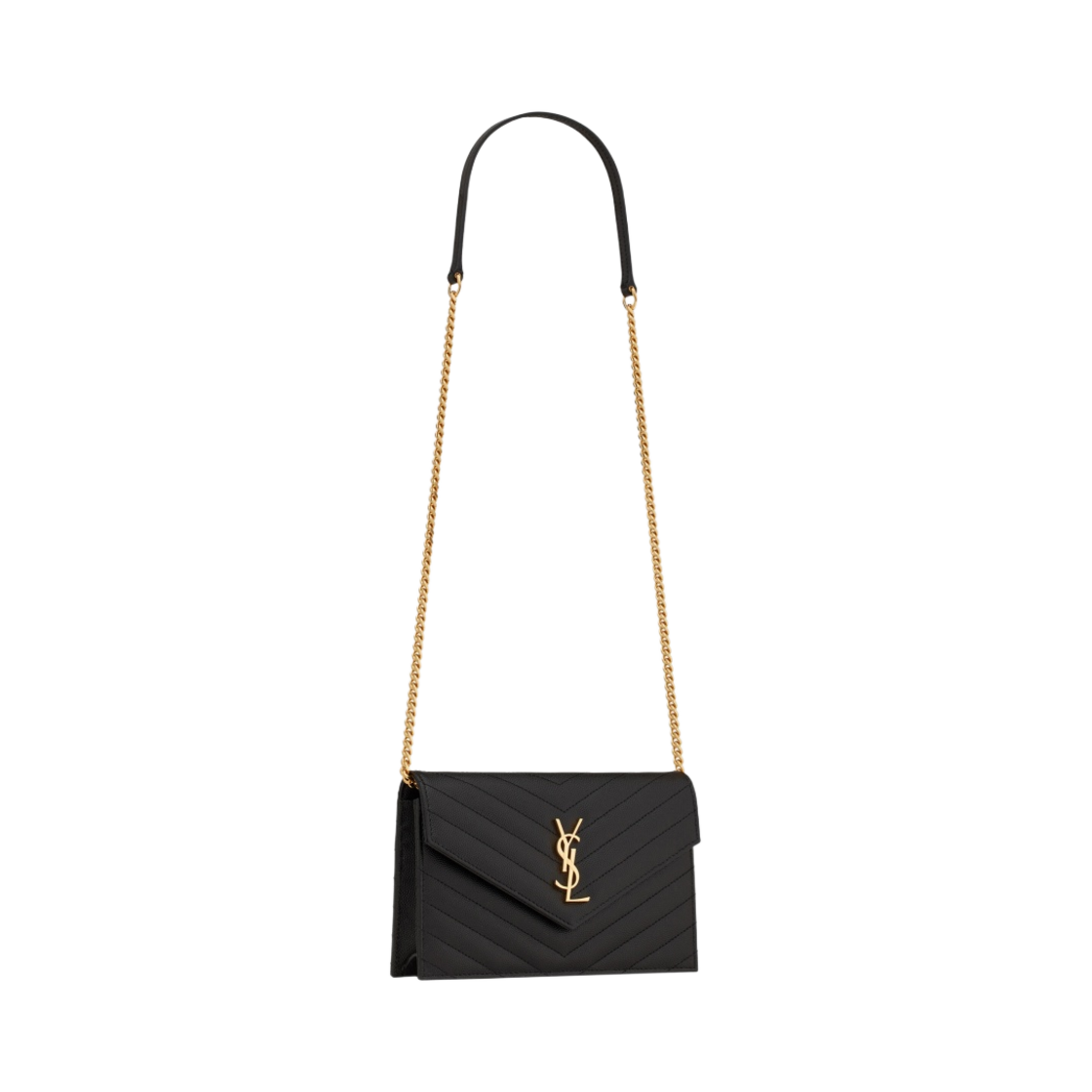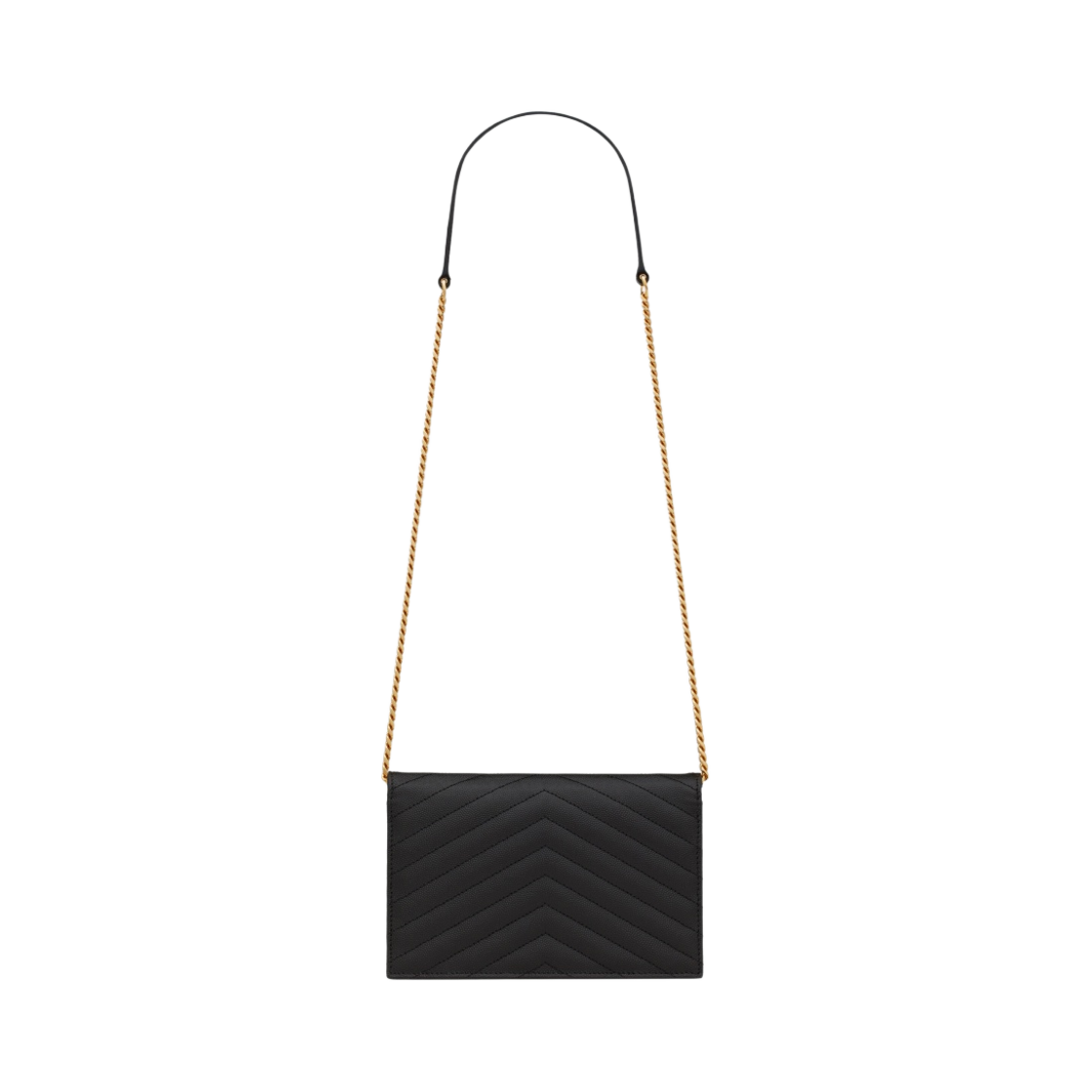 Saint Laurent Cassandre Matelasse Envelope Chain Wallet in Grain de Poudre Embossed Leather Black