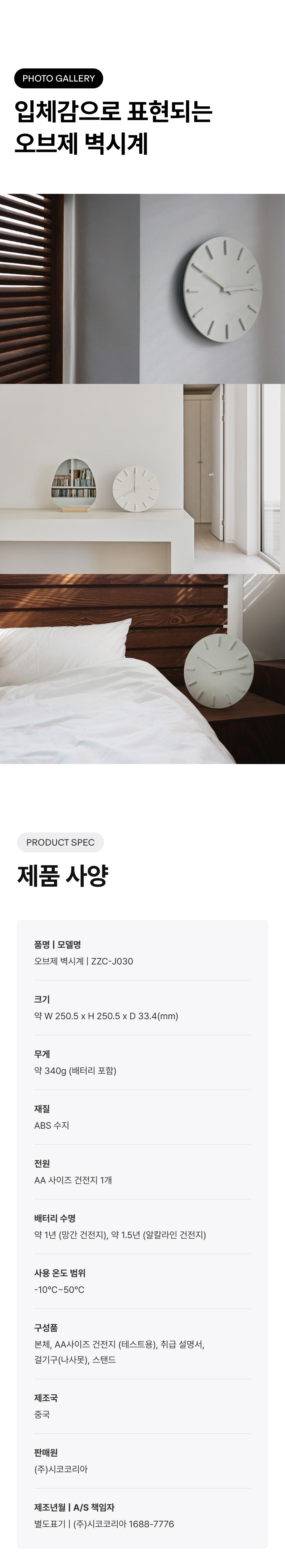 플러스마이너스제로 본사직영 오브제 벽시계 J030