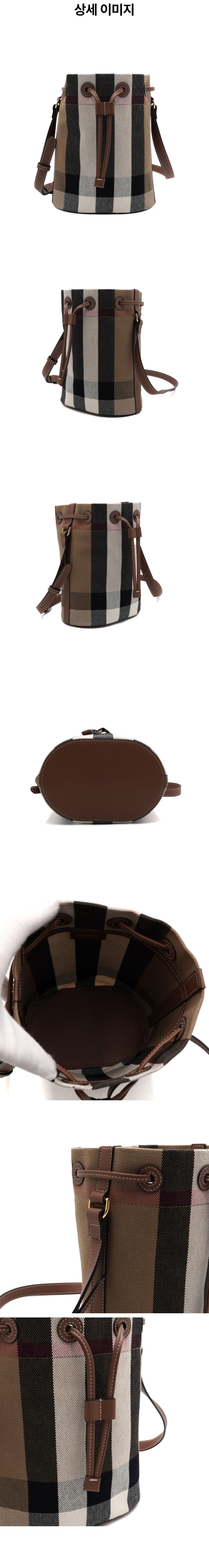 버버리 8084045 브라운 체크 캔버스 스몰 버킷 숄더백 겸 크로스백aa58885