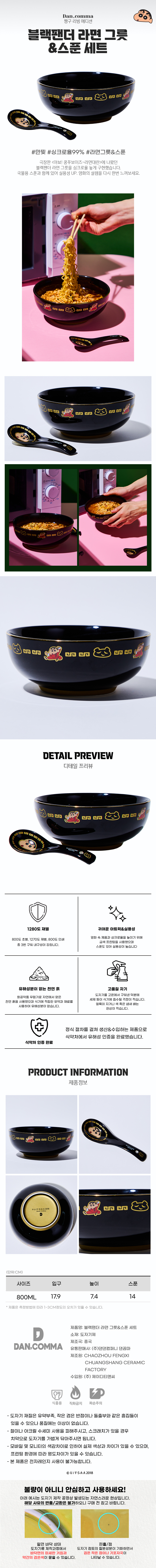 댄꼼마 x 짱구 블랙팬더 라면 그릇&스푼 세트 블랙