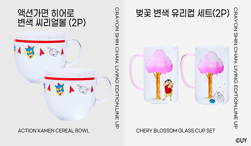 댄꼼마 x 짱구 벚꽃 변색 유리컵 세트 핑크 2P
