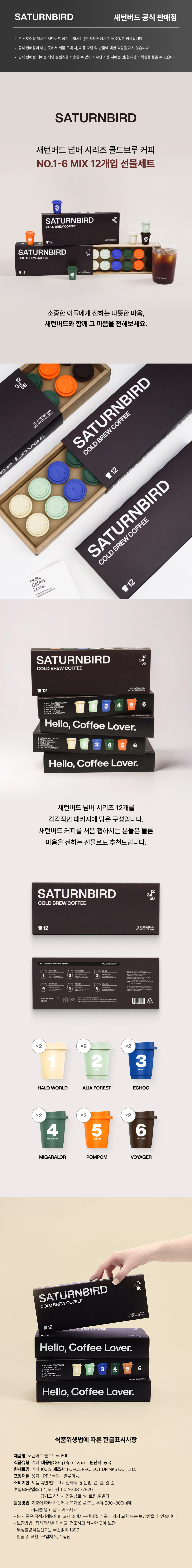 새턴버드 넘버 시리즈 콜드브루 커피 12개입 선물세트 (6종 혼합) (Hello, Coffee Lover.)