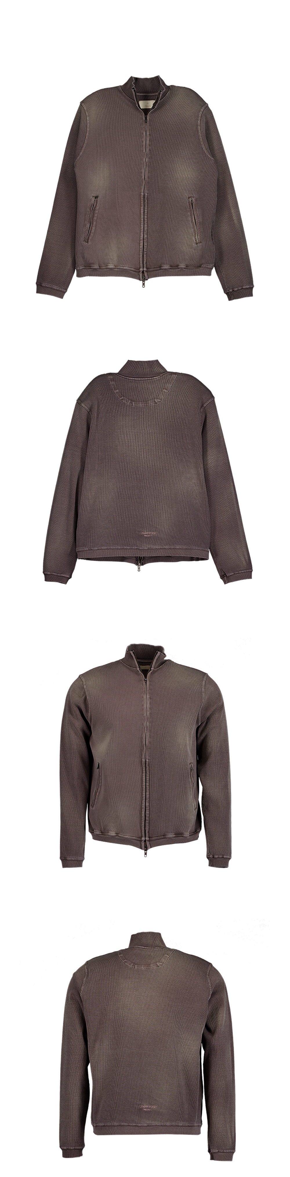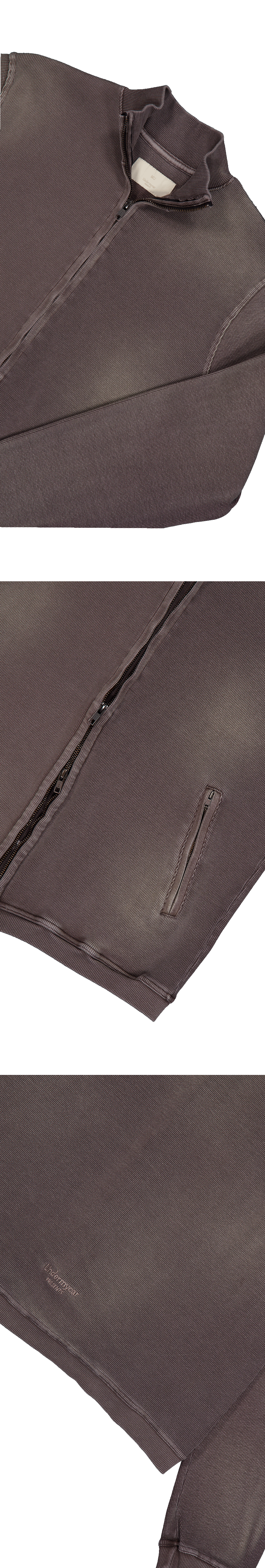 Undermycar Mu.156 Classic Logo Brush Washed Ribbed Mock Neck Zip-Up Washed Mocha