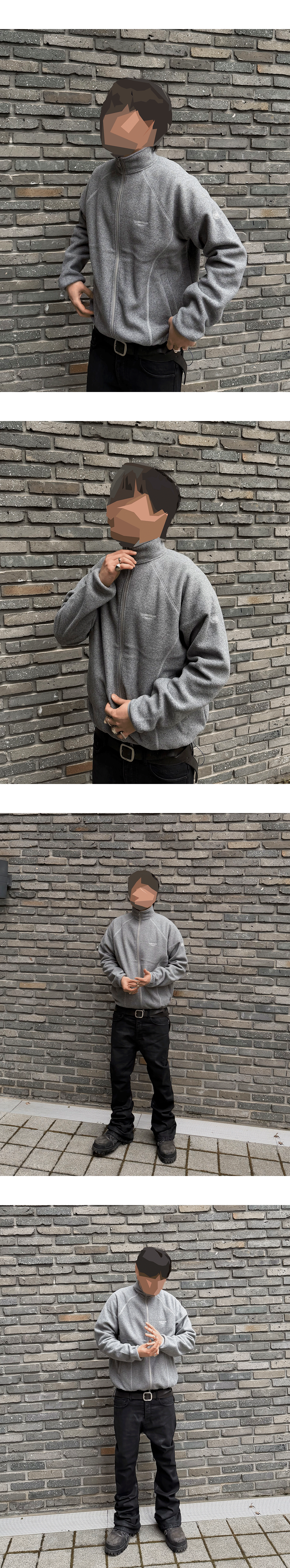 언더마이카 무.159 콤비 지오 라인 플리스 집업 멜란지그레이