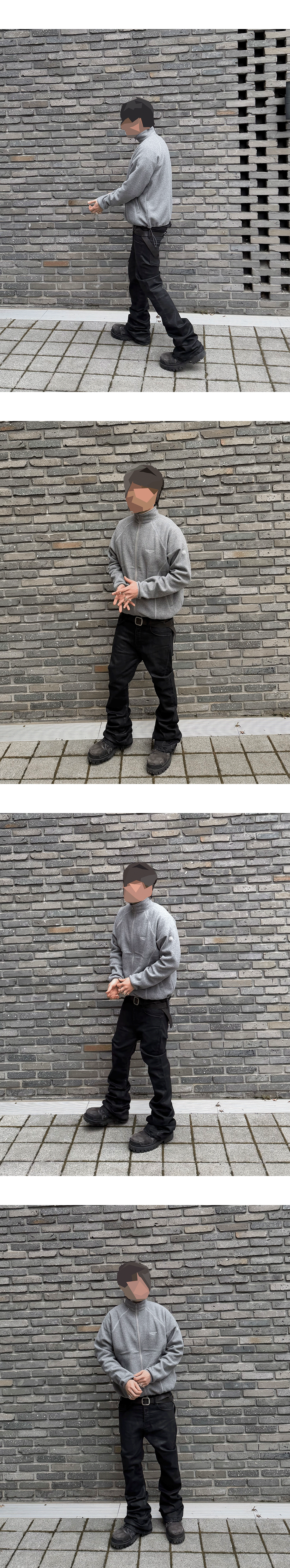 Model spec - 178cm / 70kg 상의 - Mu.159 Combi Geo Line Fleece Zip-Up - Size 2 착용 하의 - Mu.158 Classic Logo Wax Coated Flare Jeans Black - Size 1 착용 (12월 29일 출시 예정)