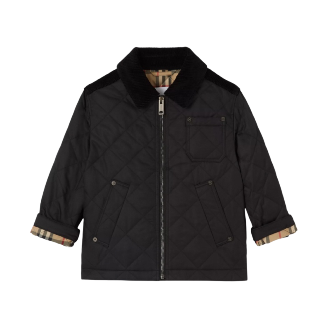 (Kids) Burberry Corduroy Detail Diamond Quilted Jacket Black