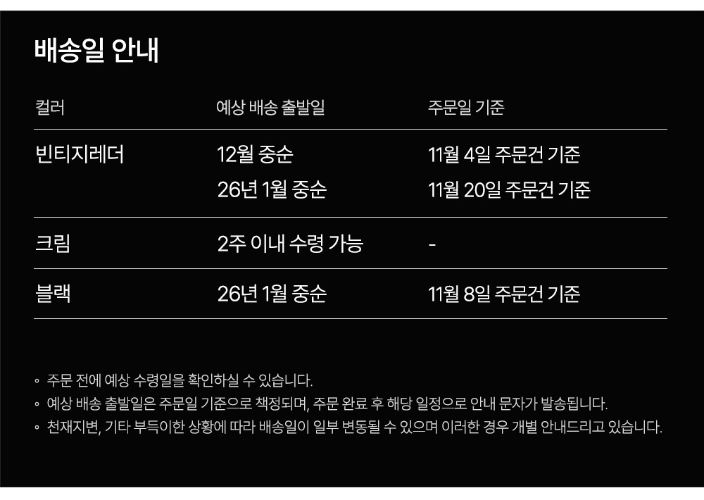 브랜드배송 무료 주문확인 후 90일 내 출고 예정