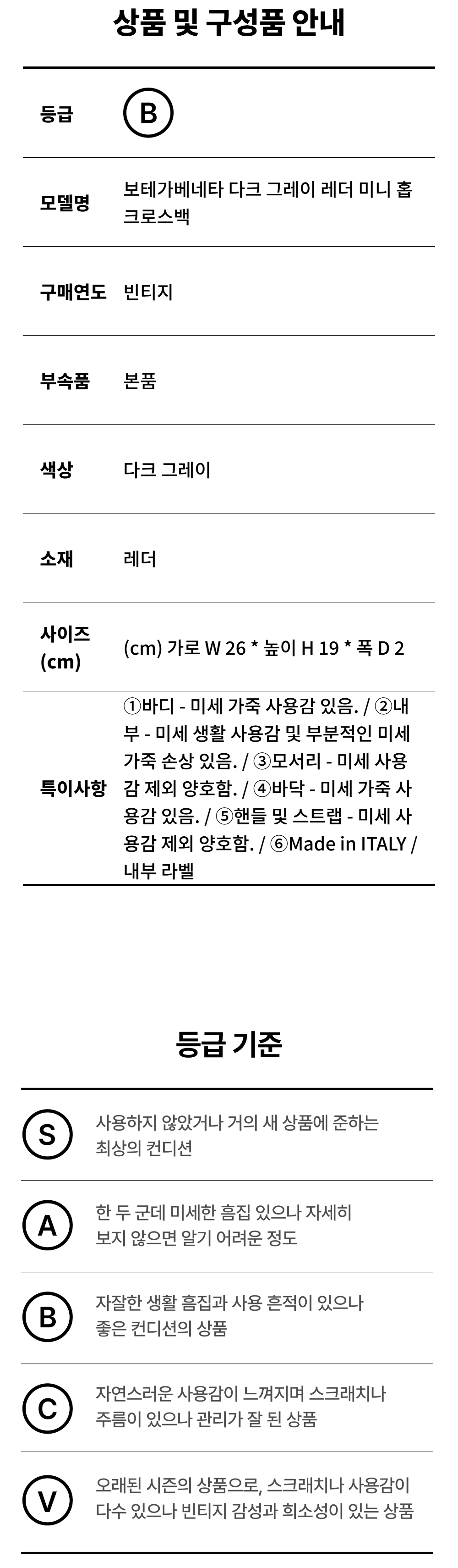보테가 베네타 다크 그레이 레더 미니 홉 크로스백 C-A42072