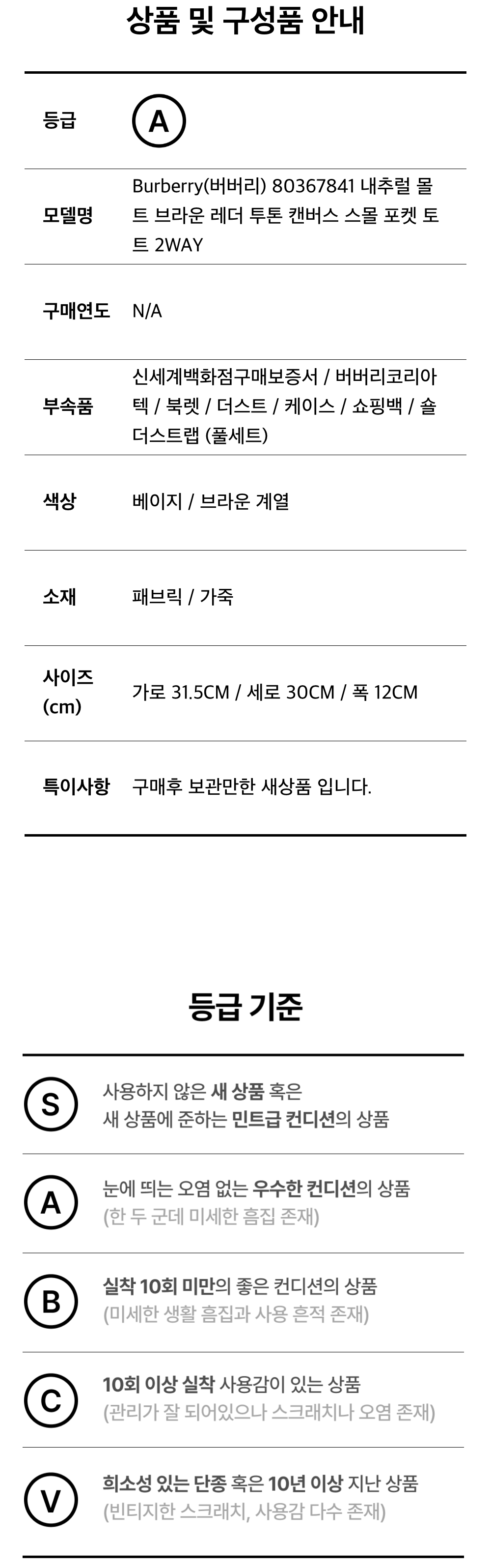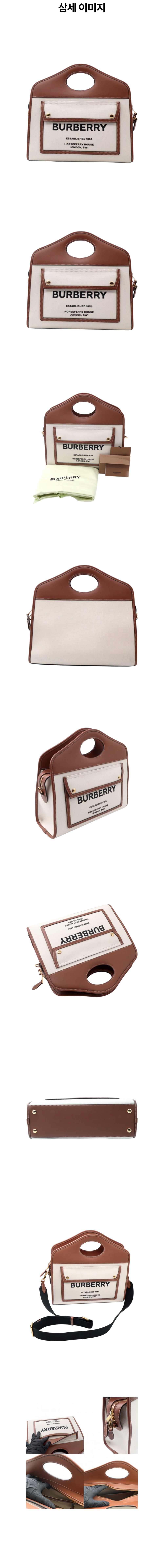 버버리 80367841 내추럴 몰트 브라운 레더 투톤 캔버스 스몰 포켓 토트 2WAY