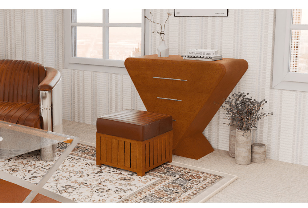 드비저리 프랑스 드비저리 꼬냑 스퀘어 스툴 오토만 빈티지레더